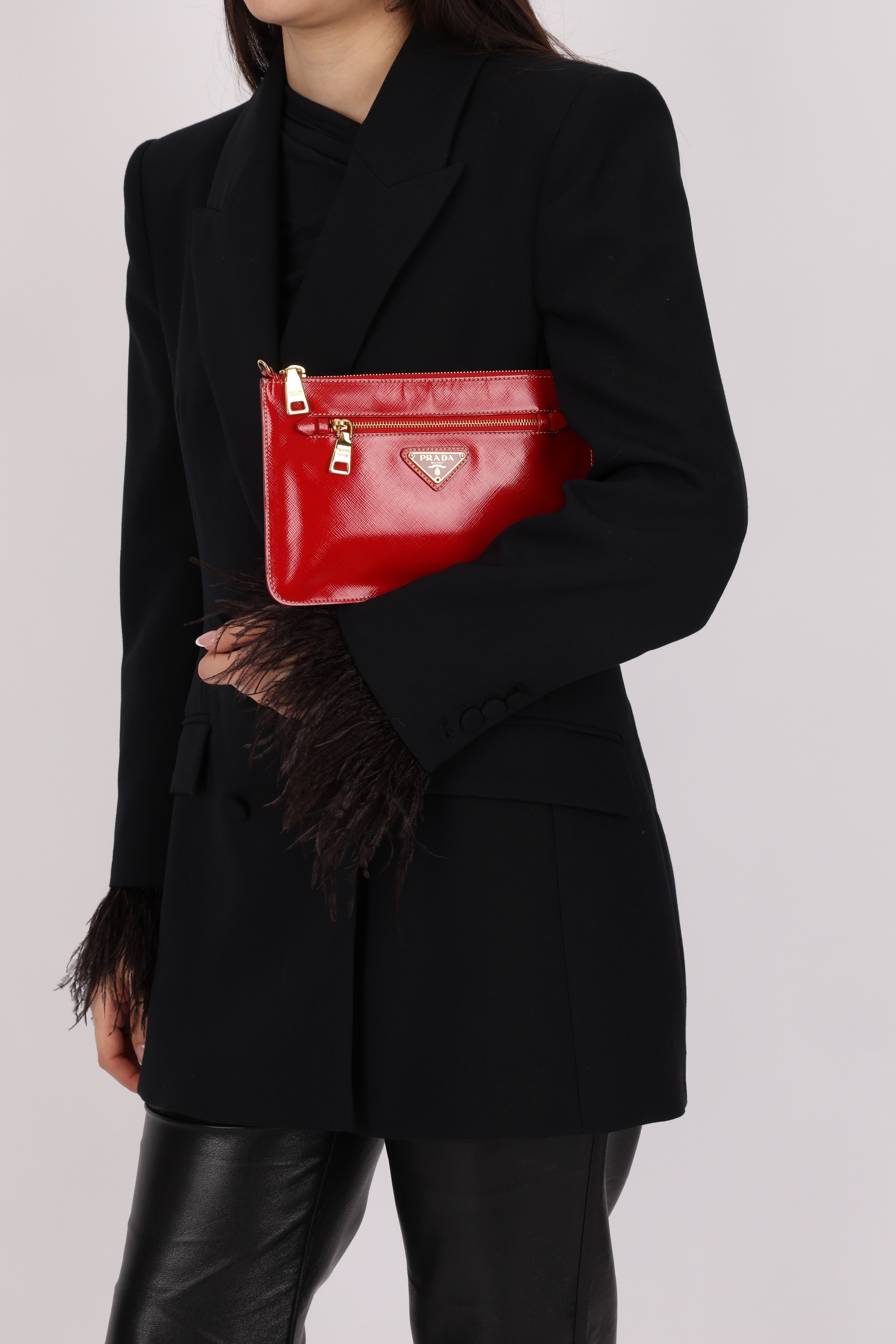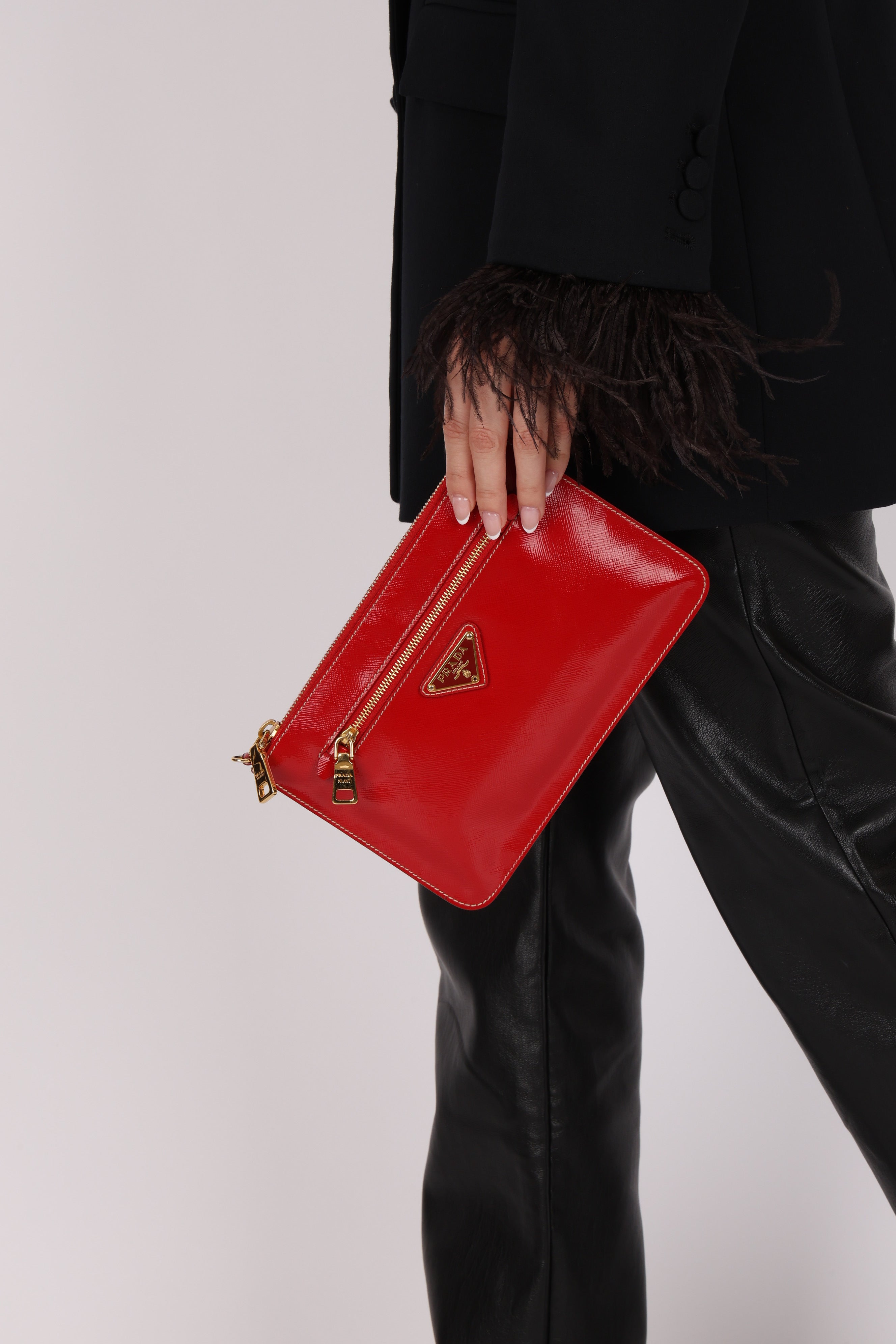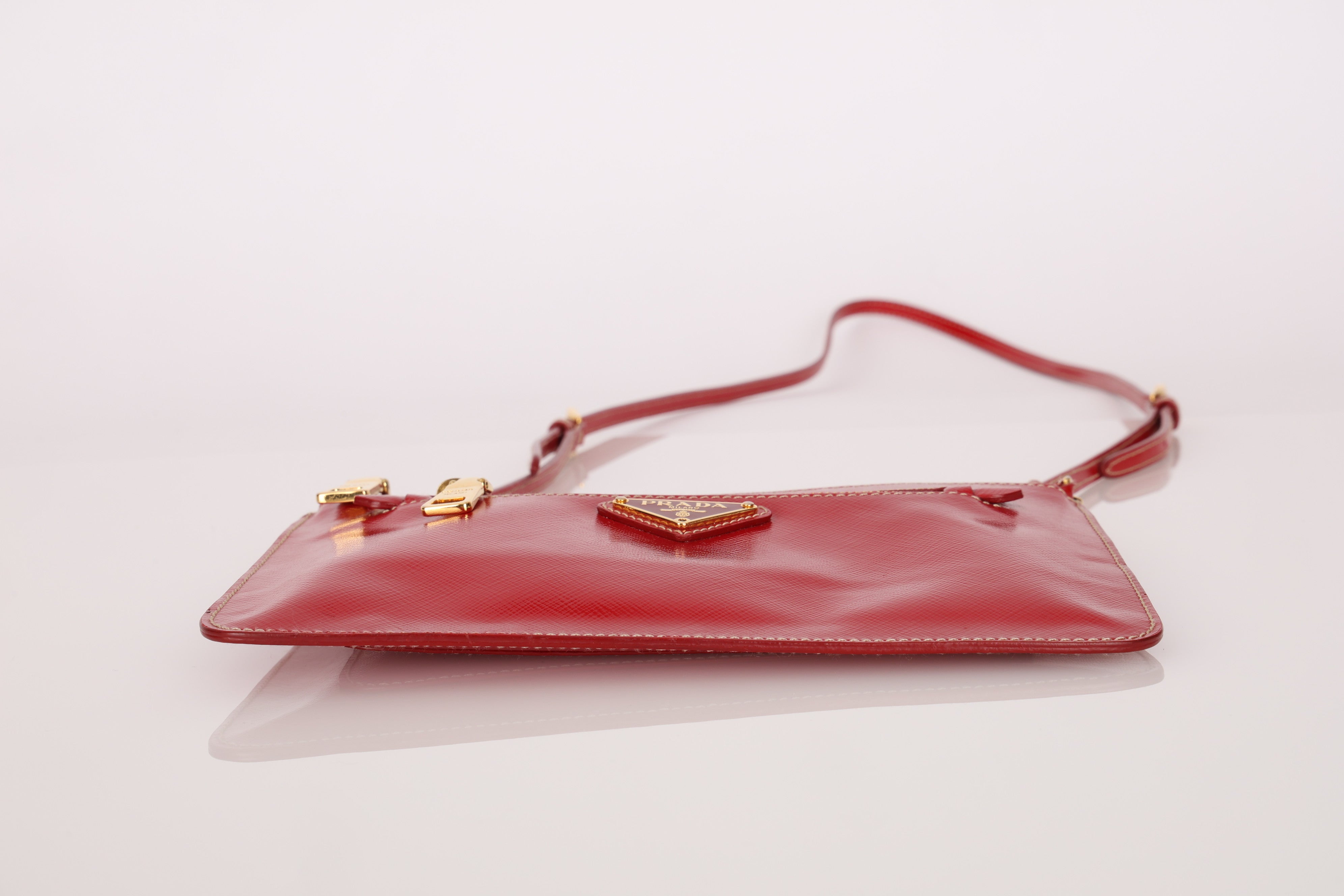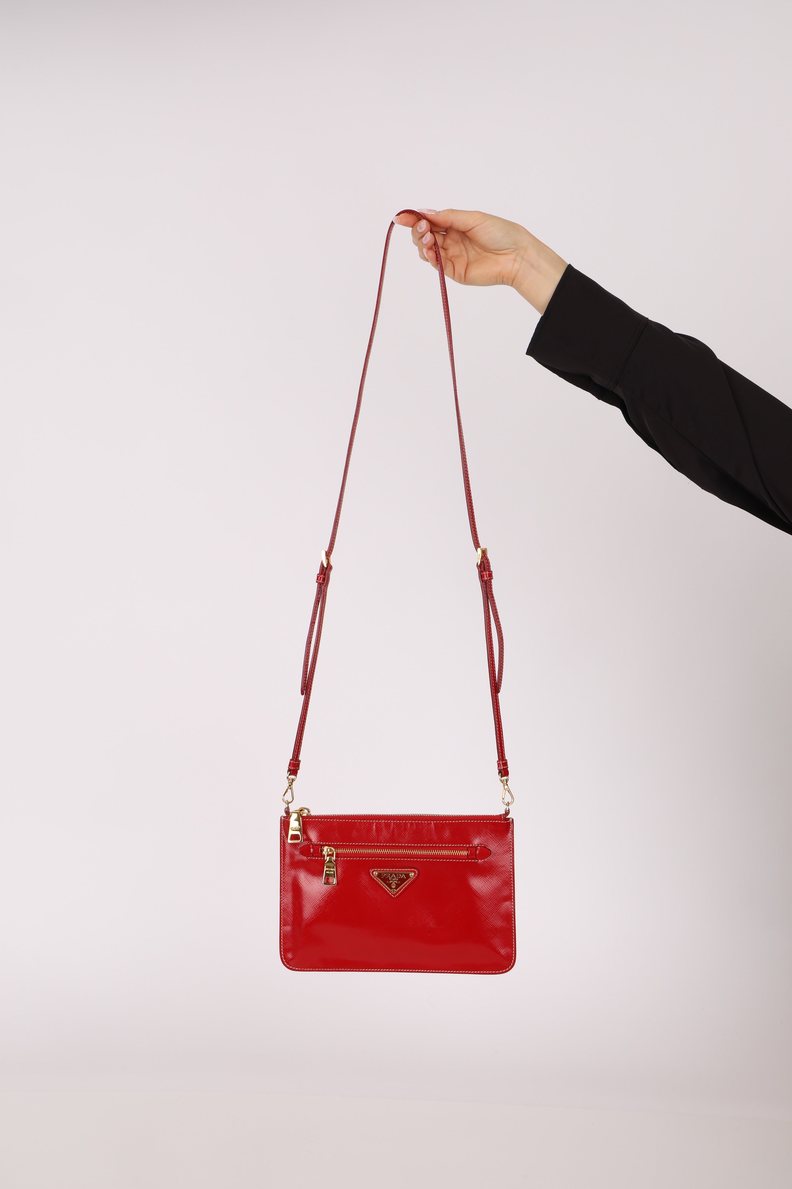 Light scratches on hardware. Normal wear throughout patent. Back pocket left top corner stitching undone.