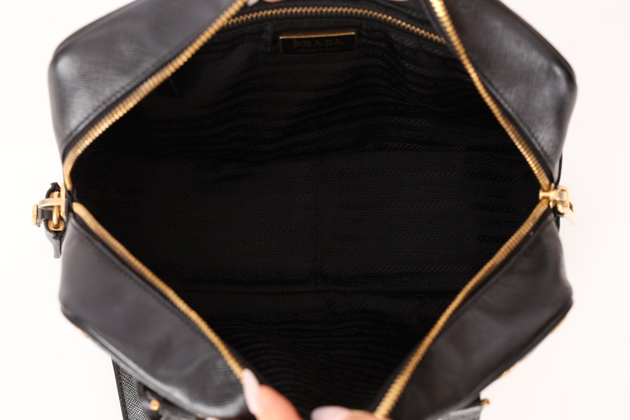 Prada Saffiano Grommet Bauletto Bowler Bag - FashioNica