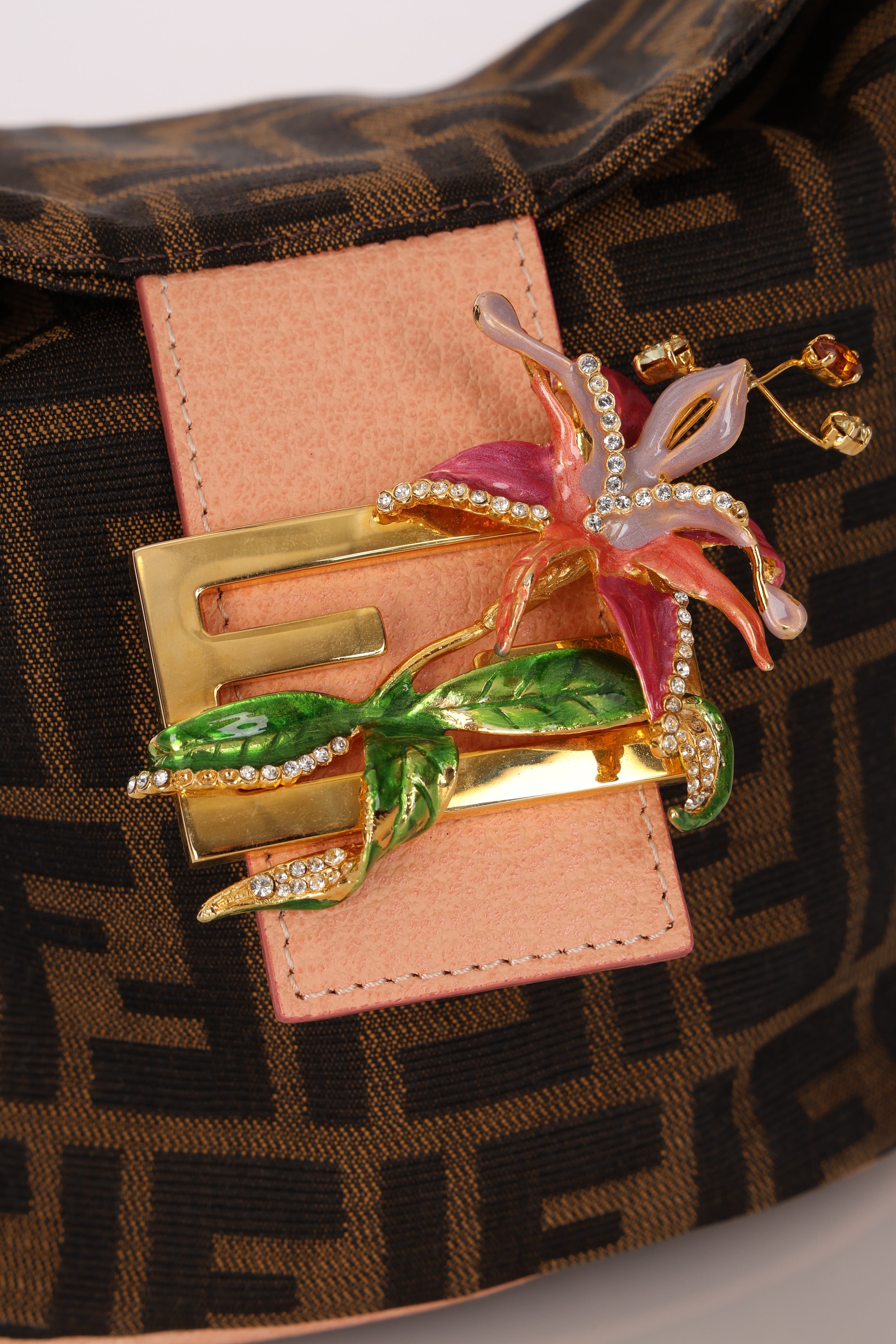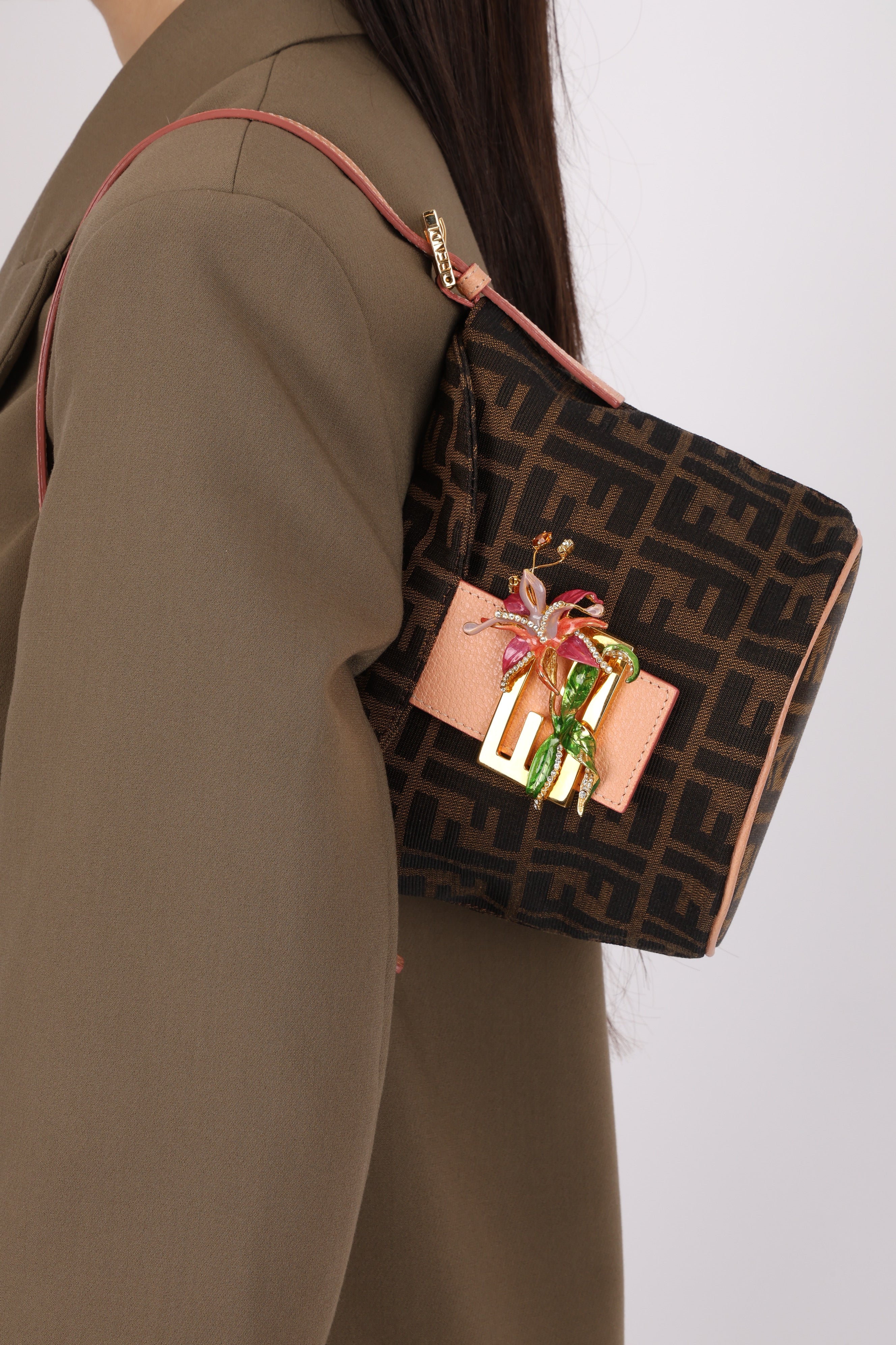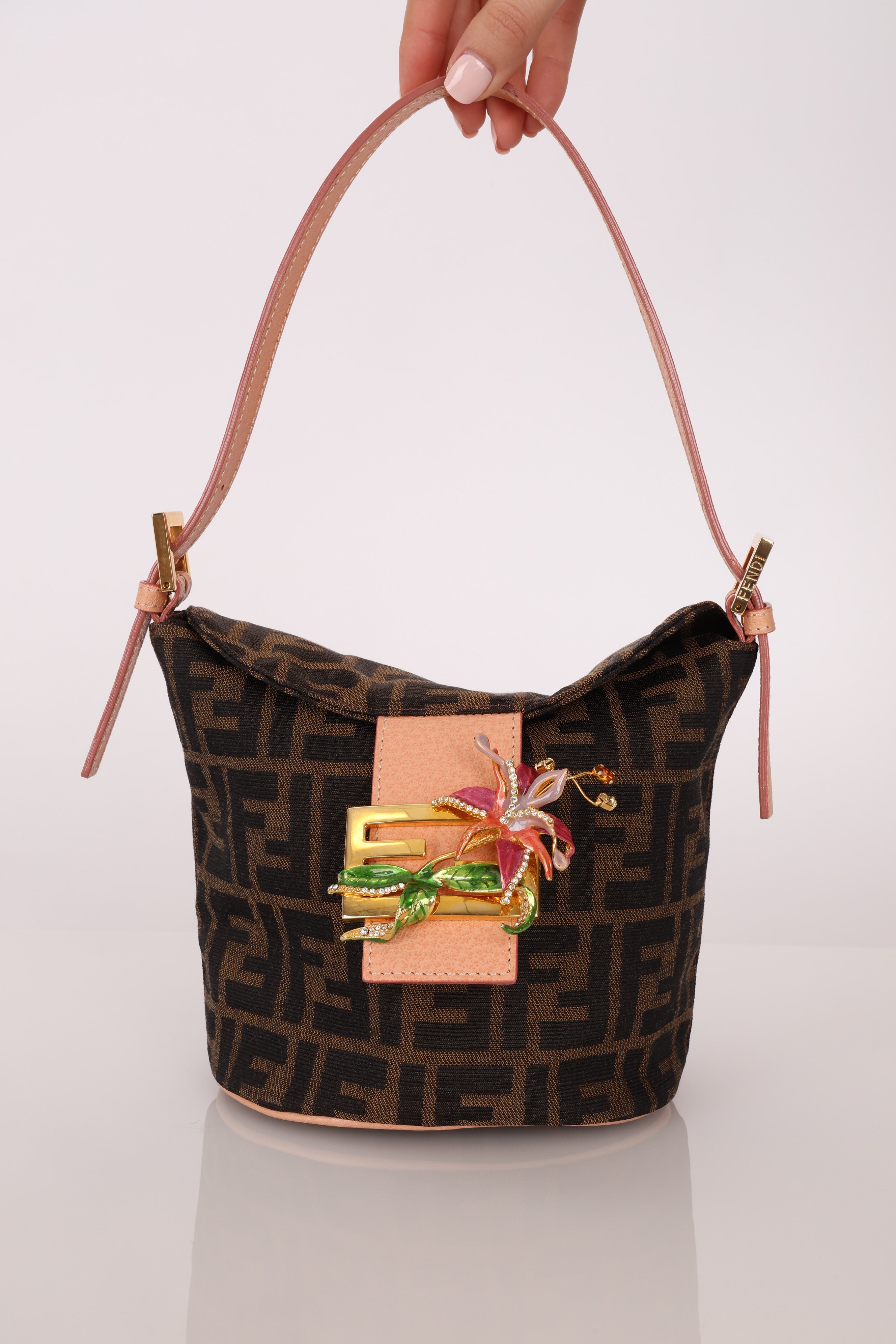Rare Fendi Zucca Crystal Orchid Bucket Bag