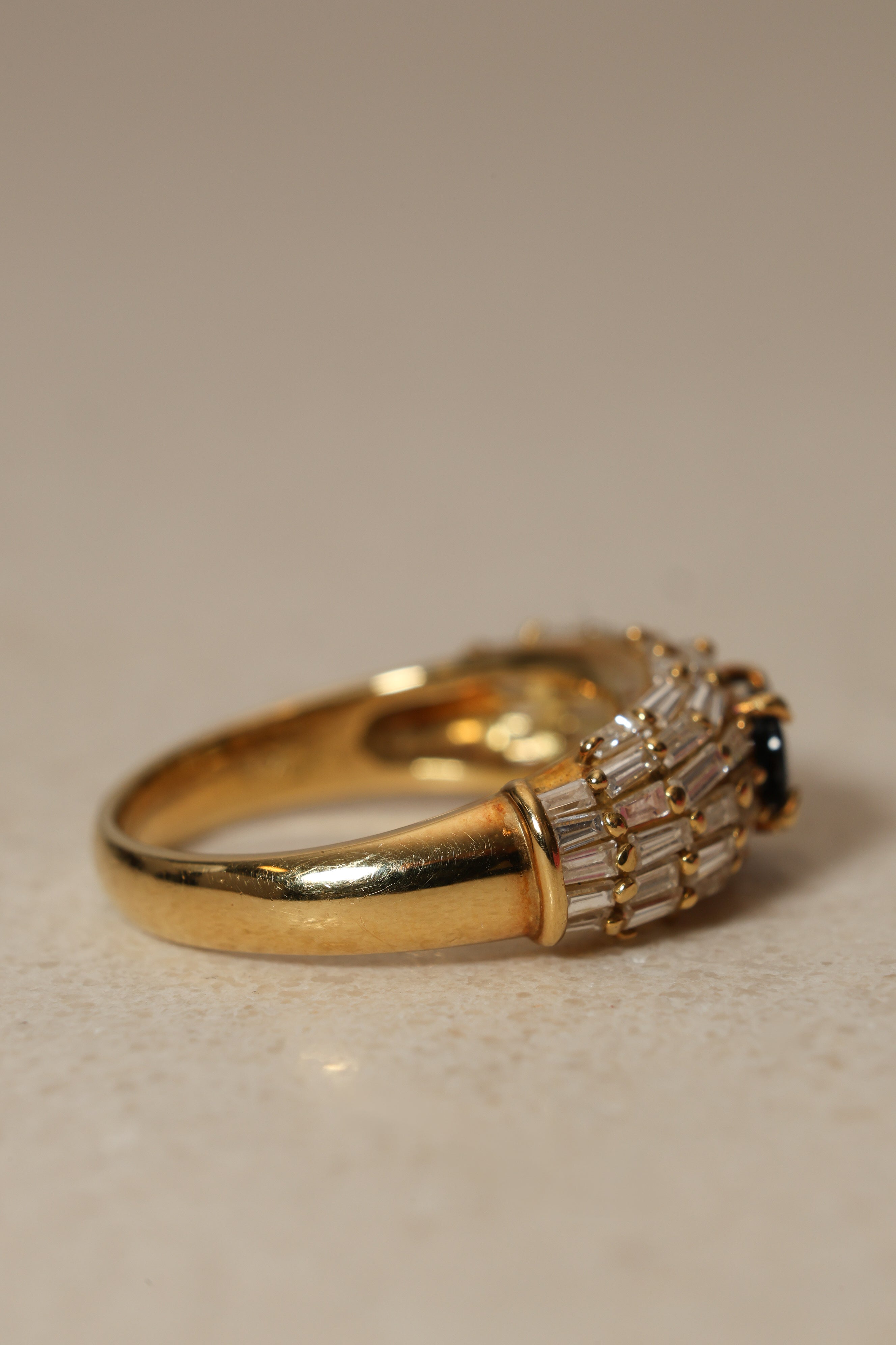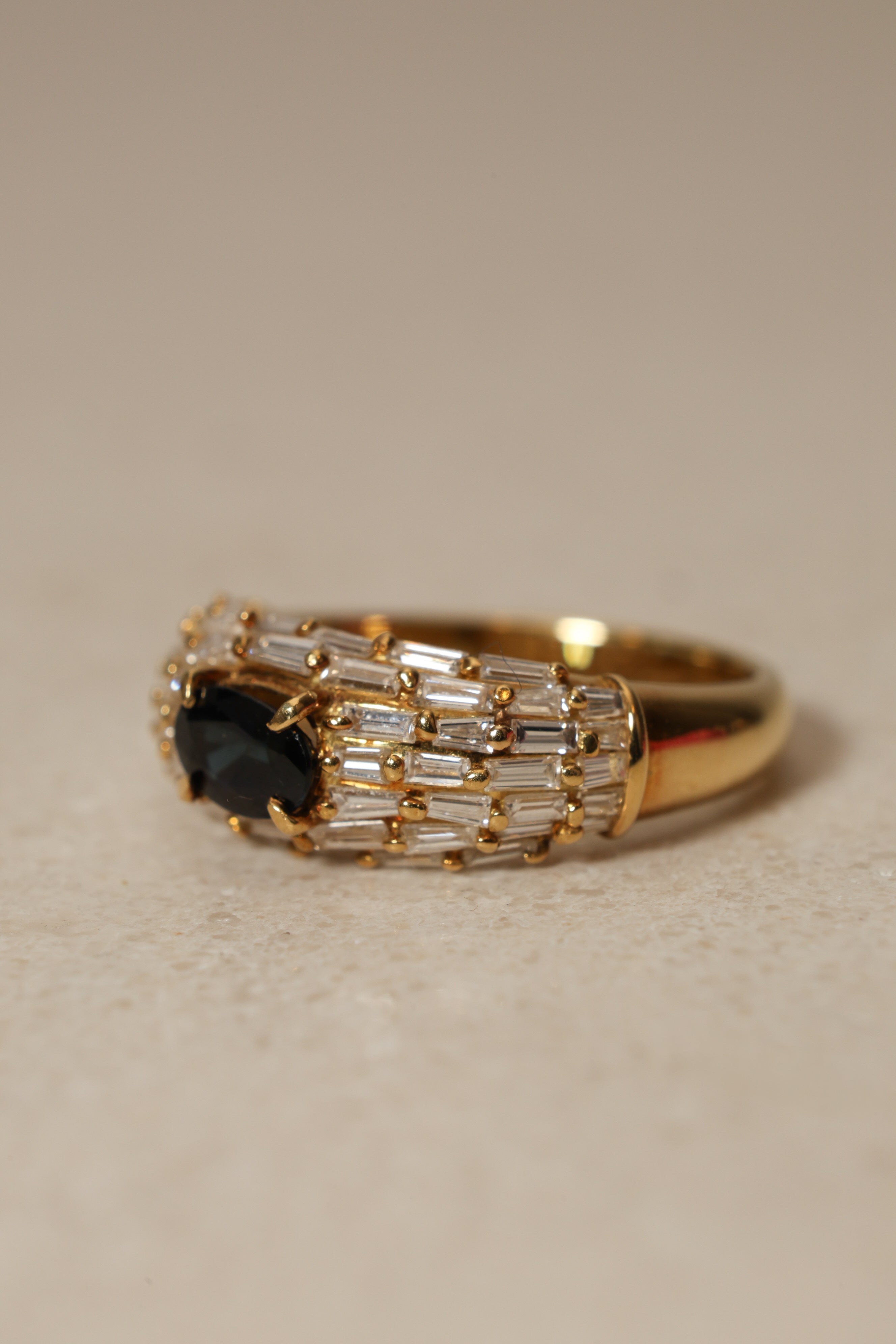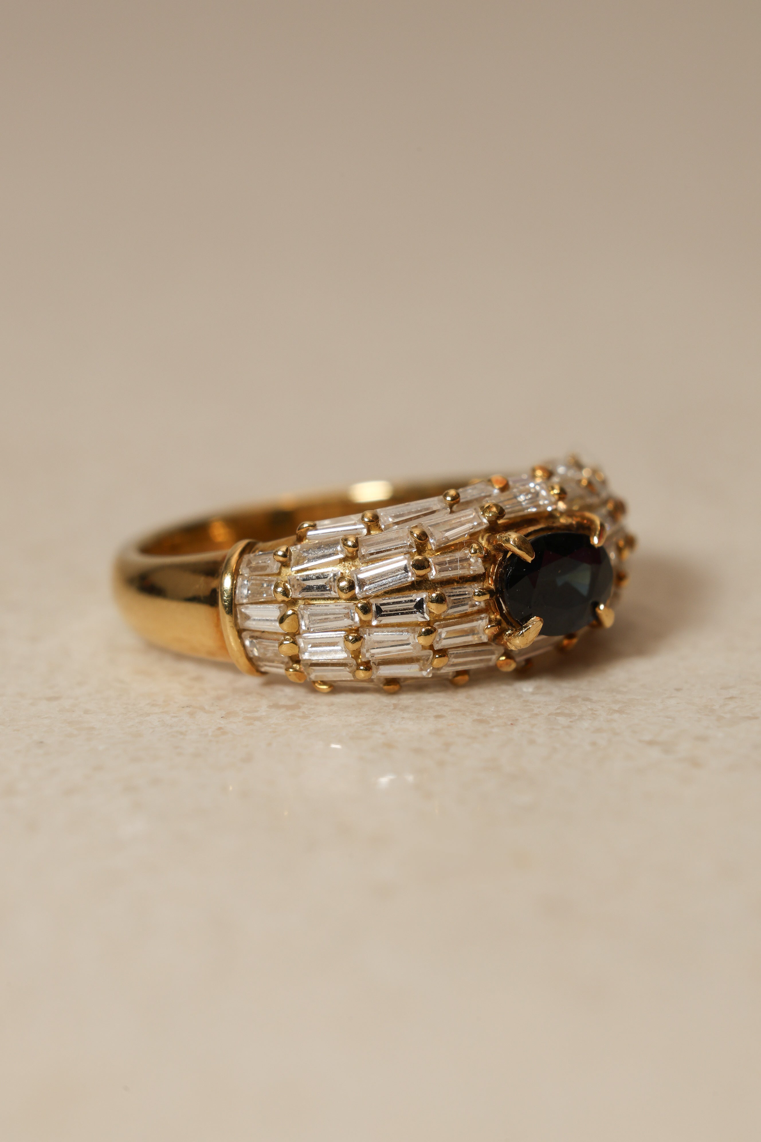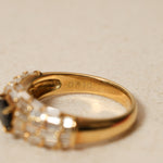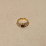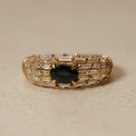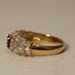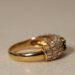 Vintage 1980's 18K Yellow Gold Sapphire and Baguette Diamond Cluster Ring, Size US 5.75