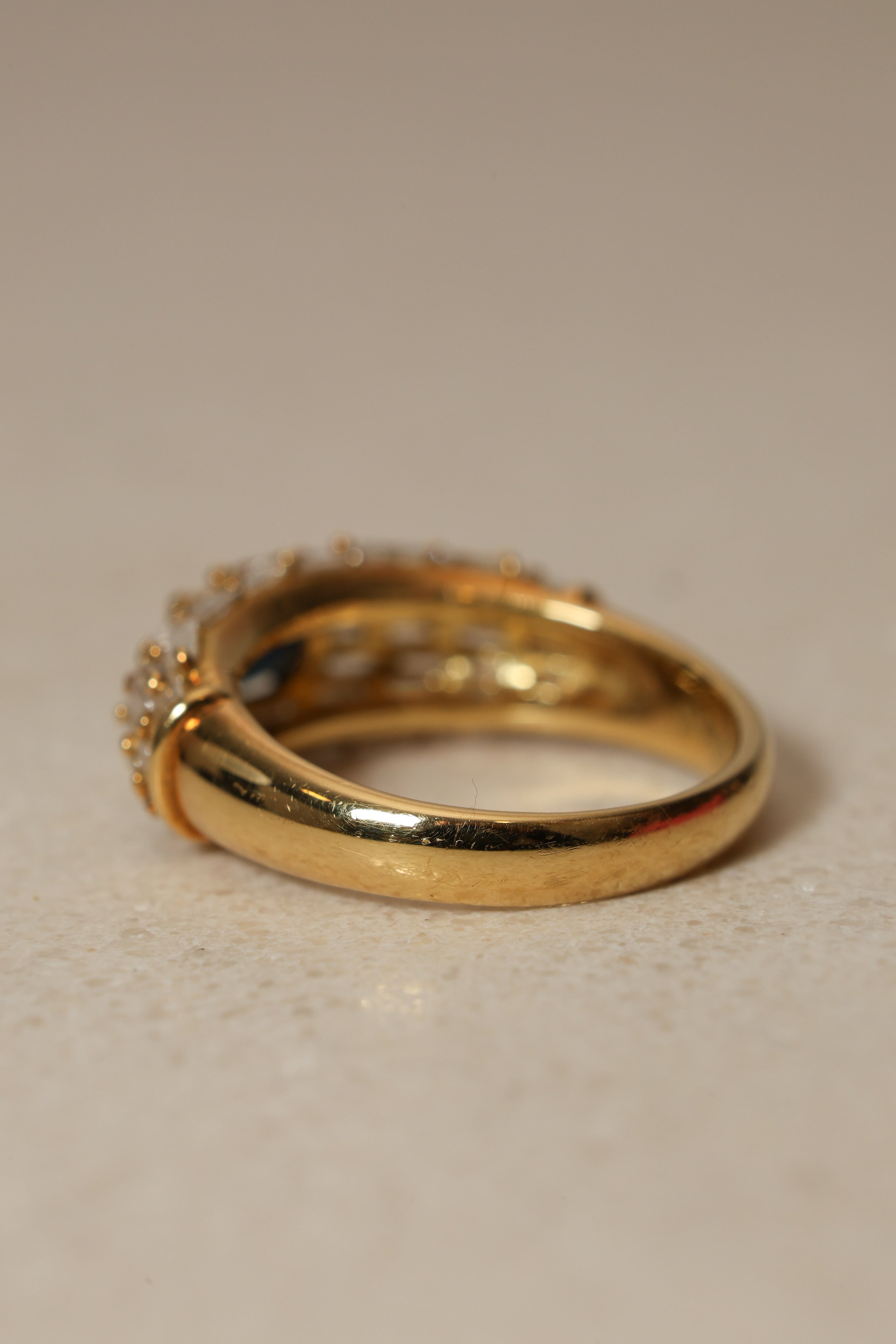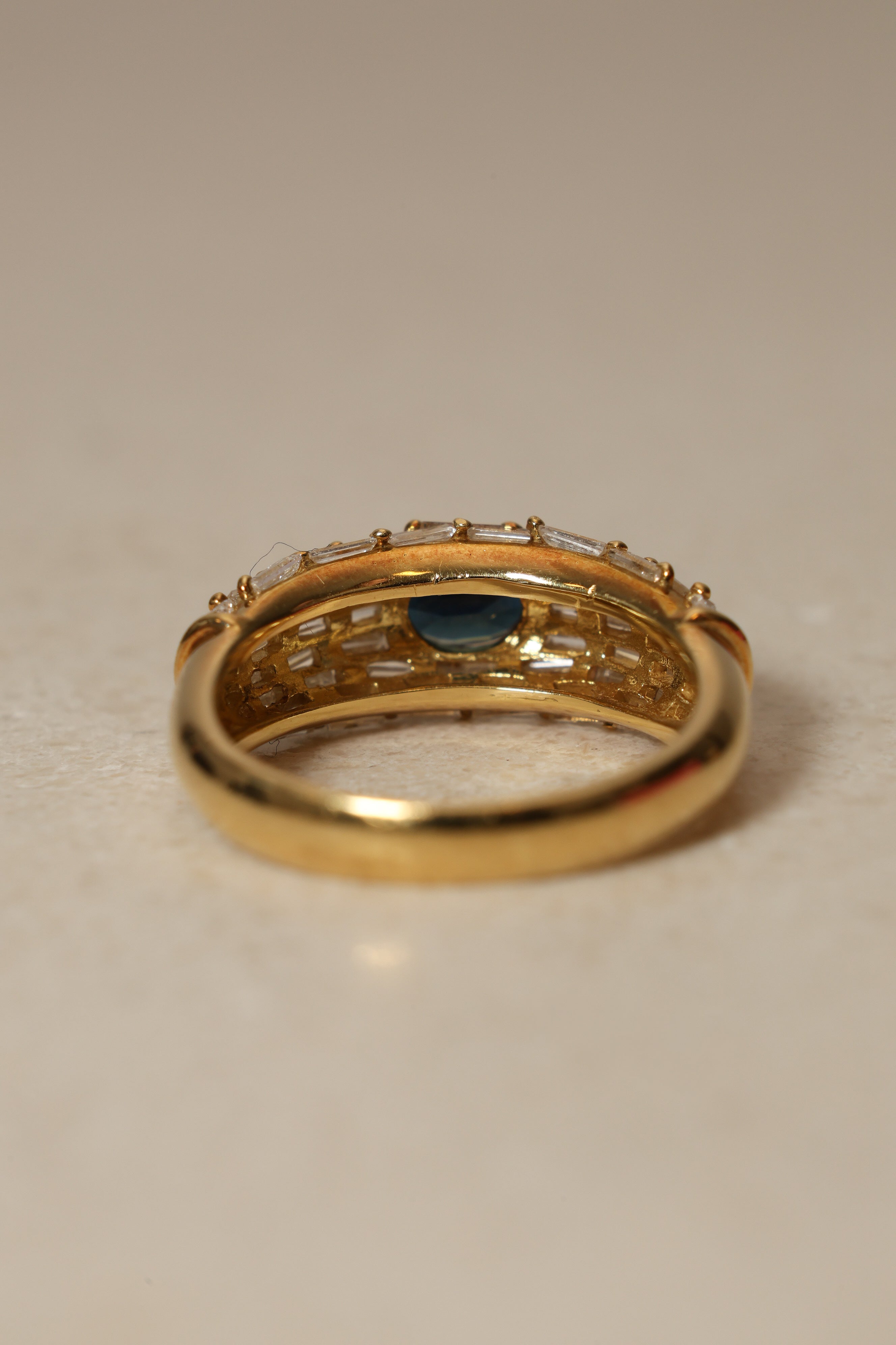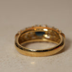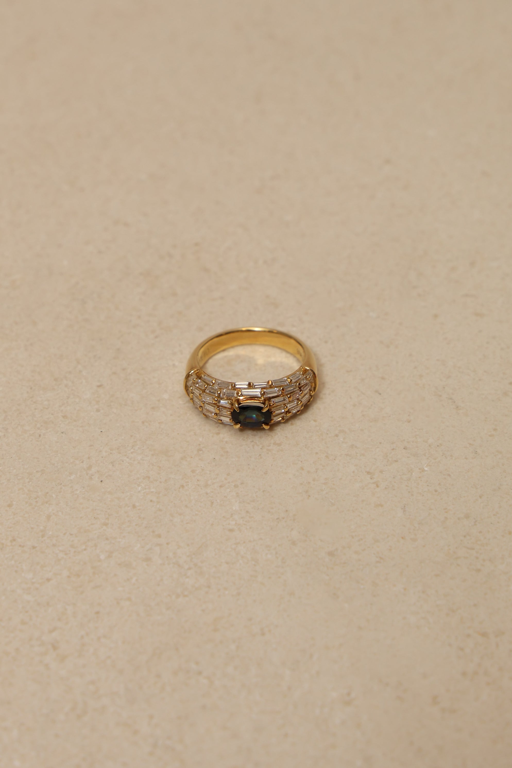 Vintage 1980's 18K Yellow Gold Sapphire and Baguette Diamond Cluster Ring, Size US 5.75