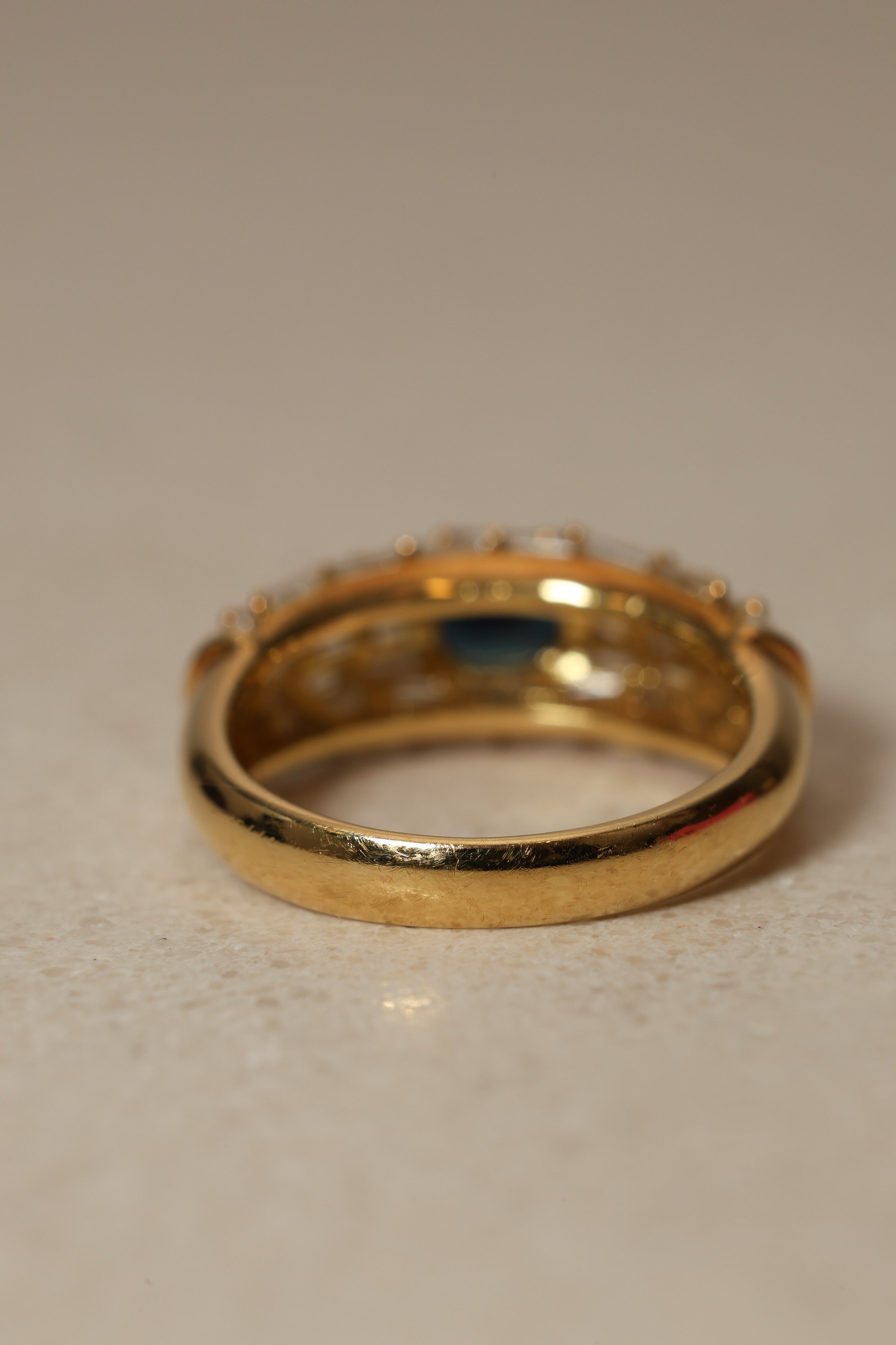 All diamonds and sapphire intact. Scratches on hardware.