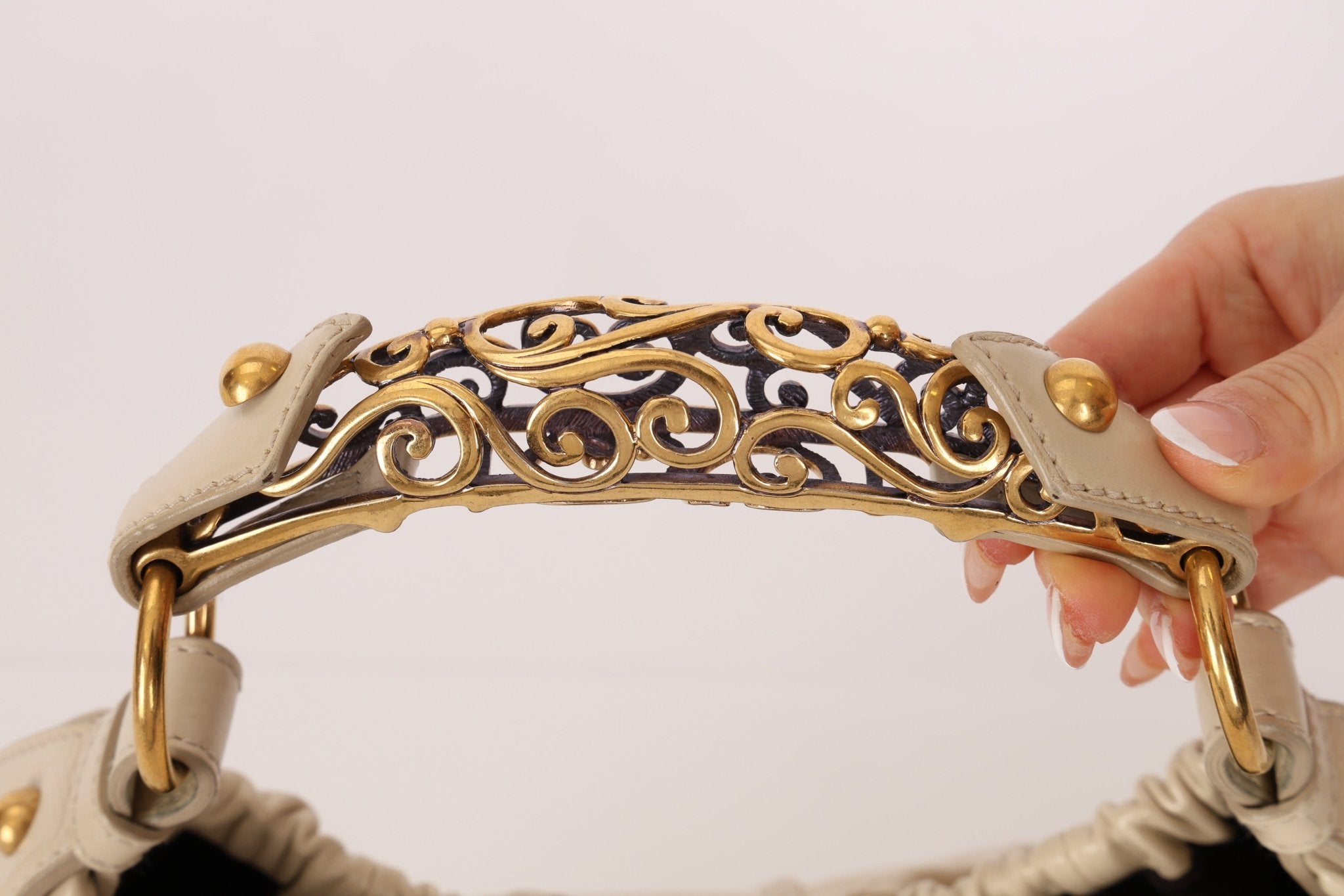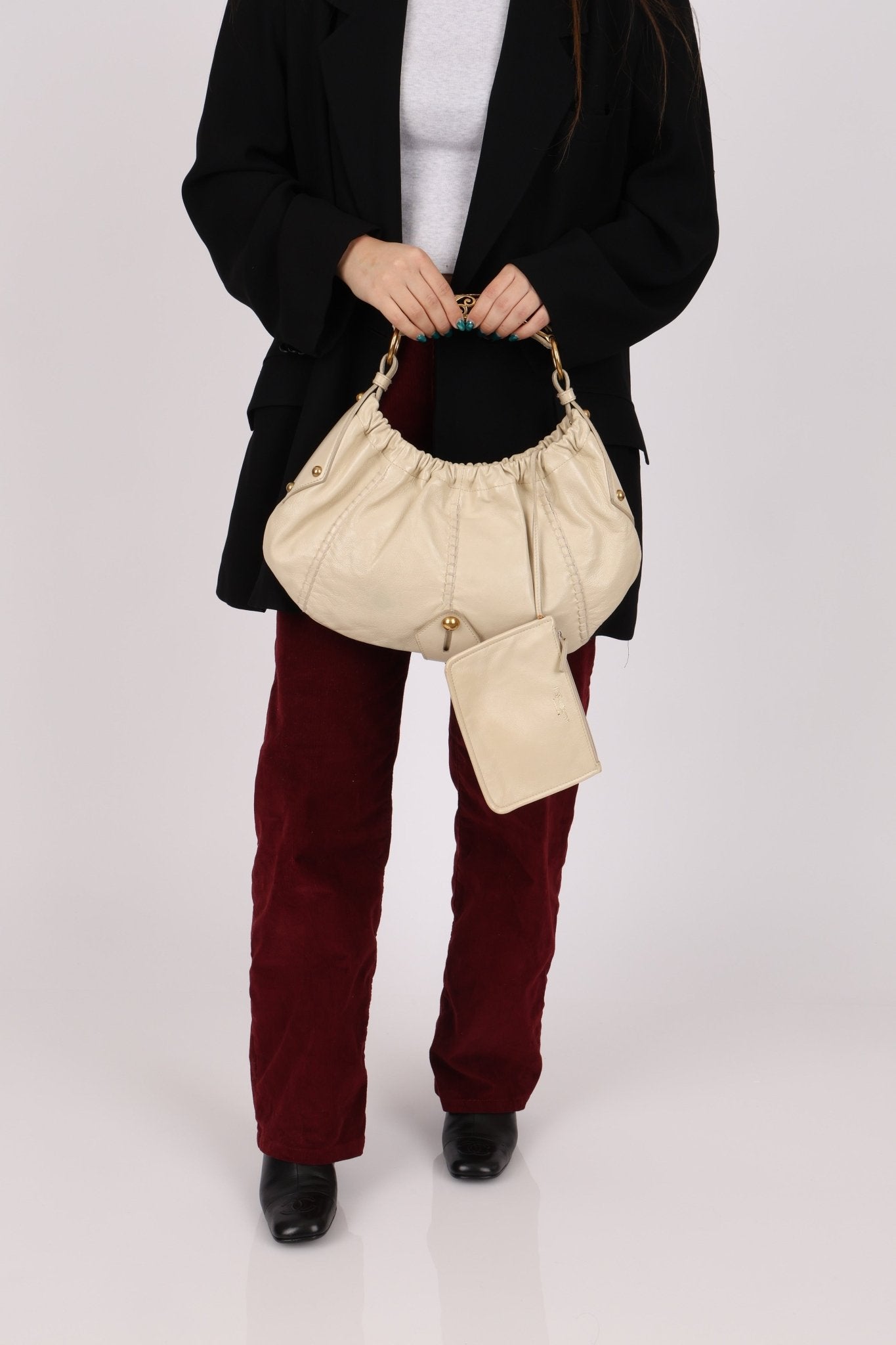 Rare Saint Laurent x Tom Ford Cream Leather Mombasa Metal Handle Bag with Pouch - FashioNica