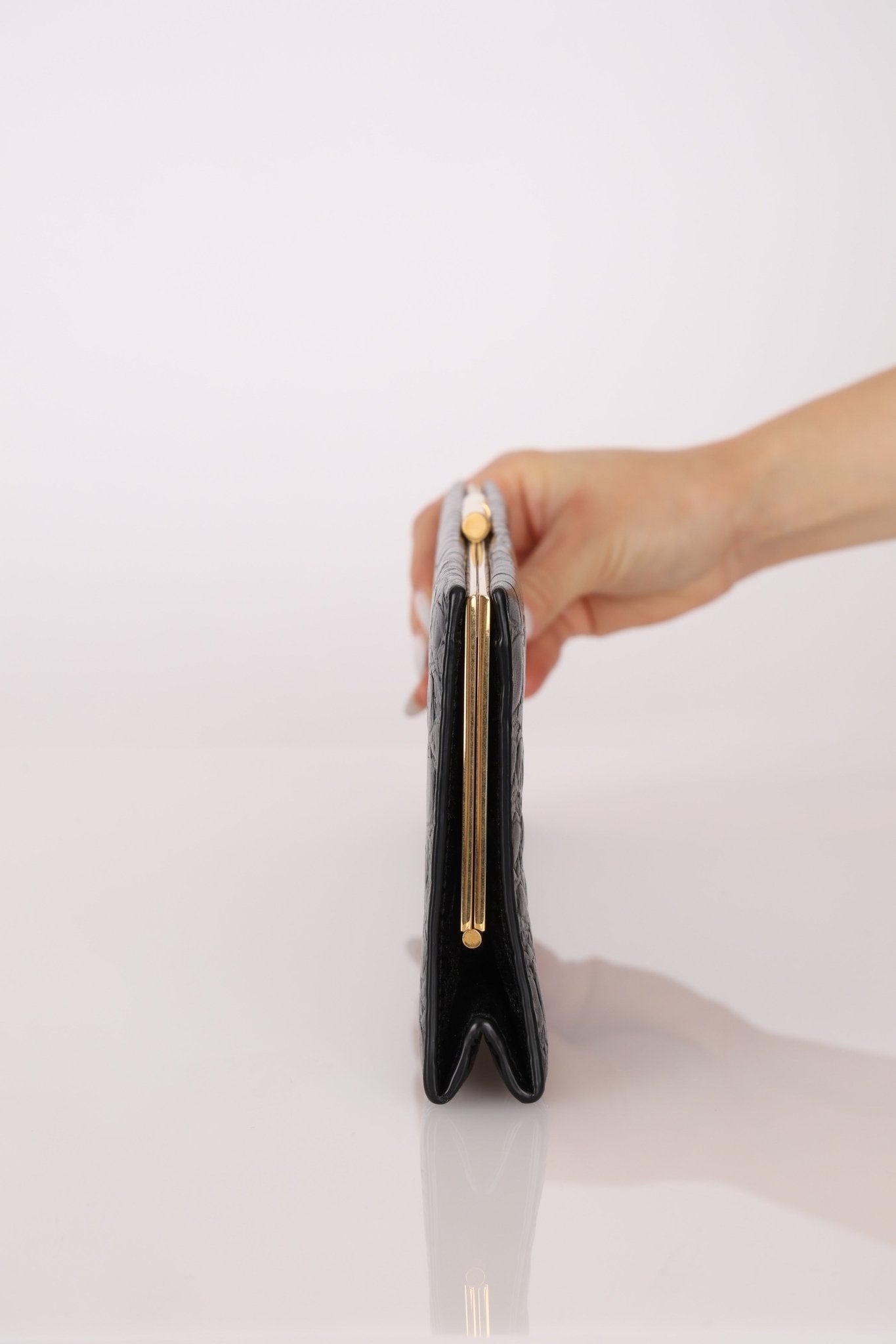 Saint Laurent Runway Croc Embossed Midnight Clutch - FashioNica