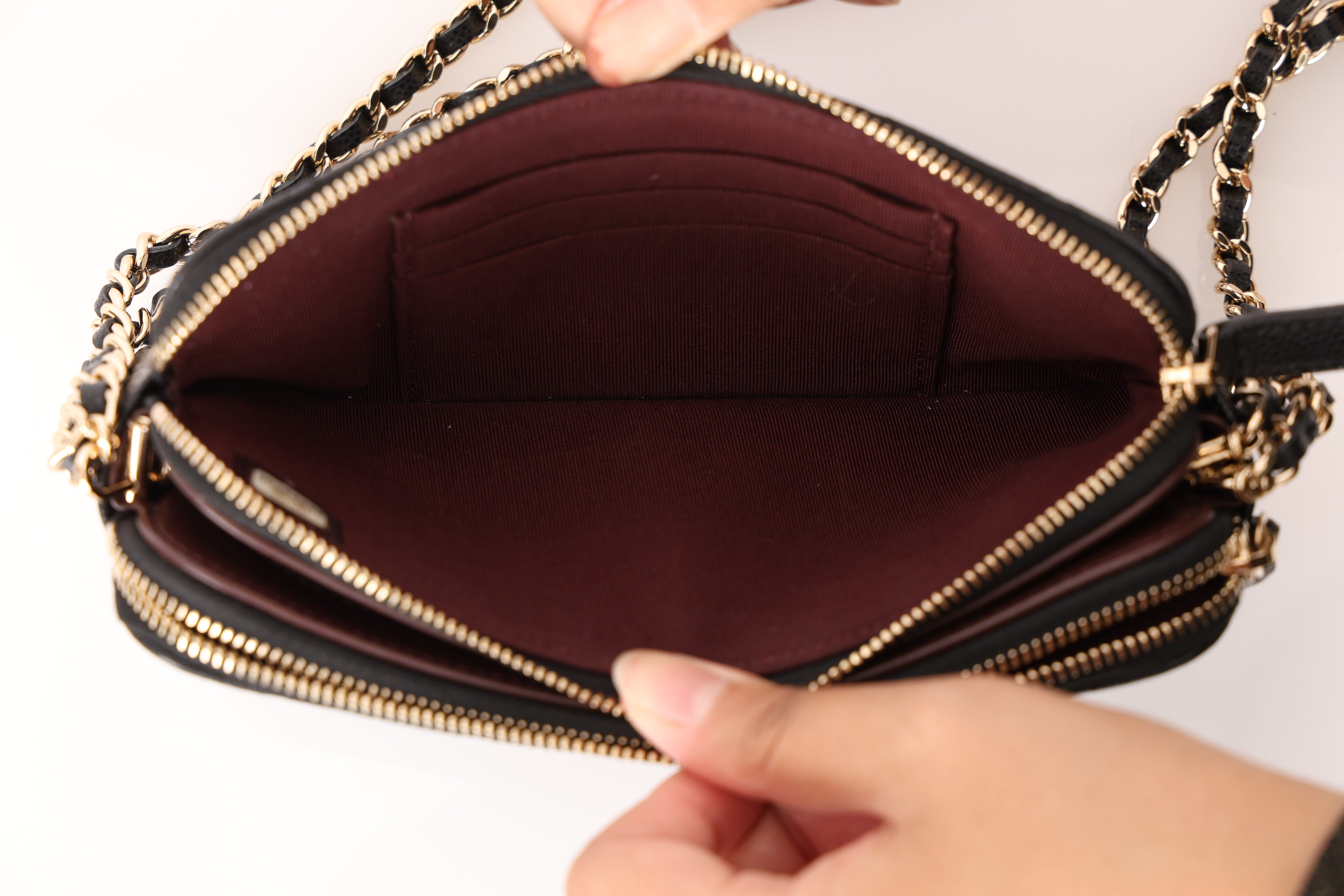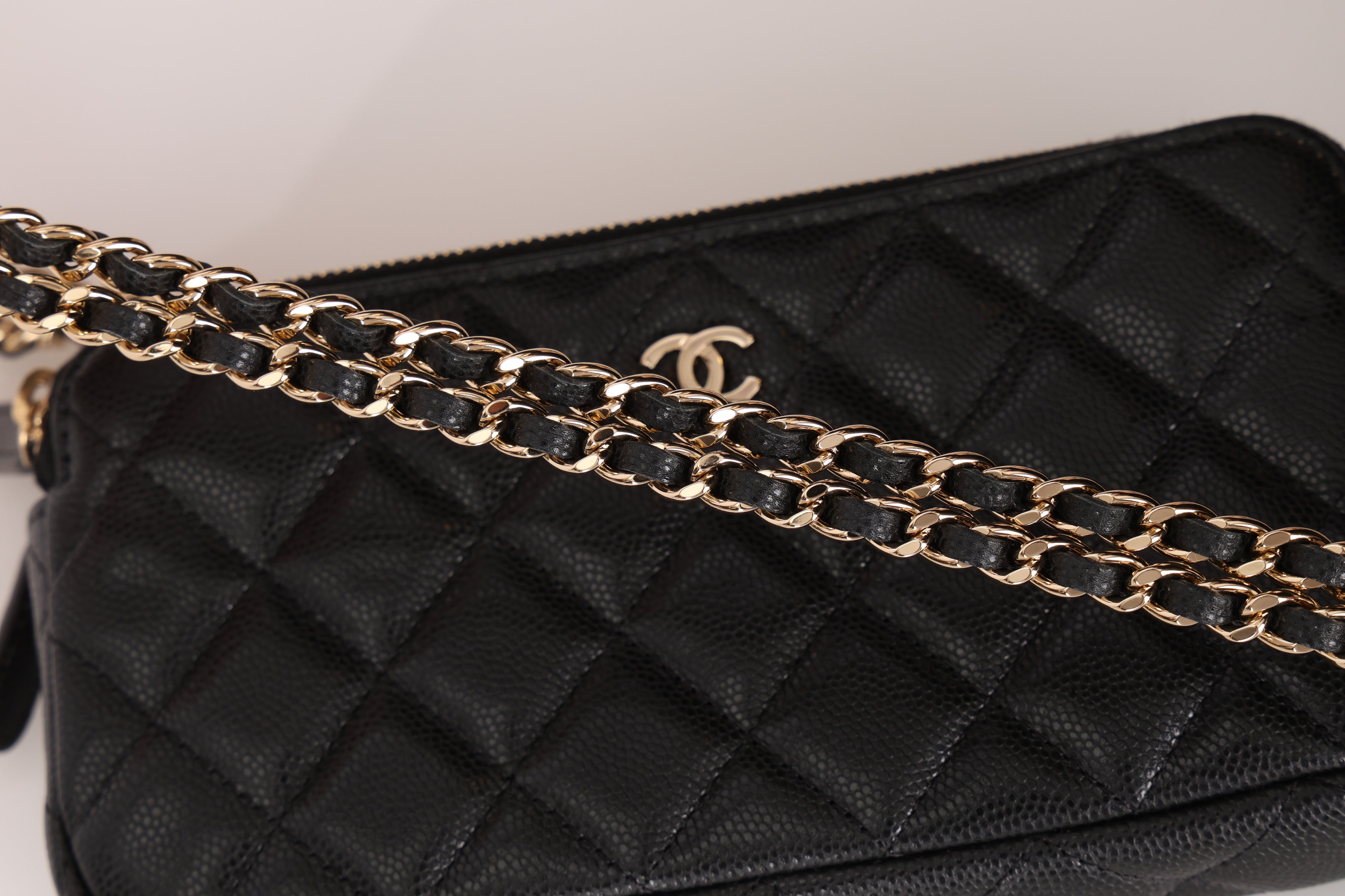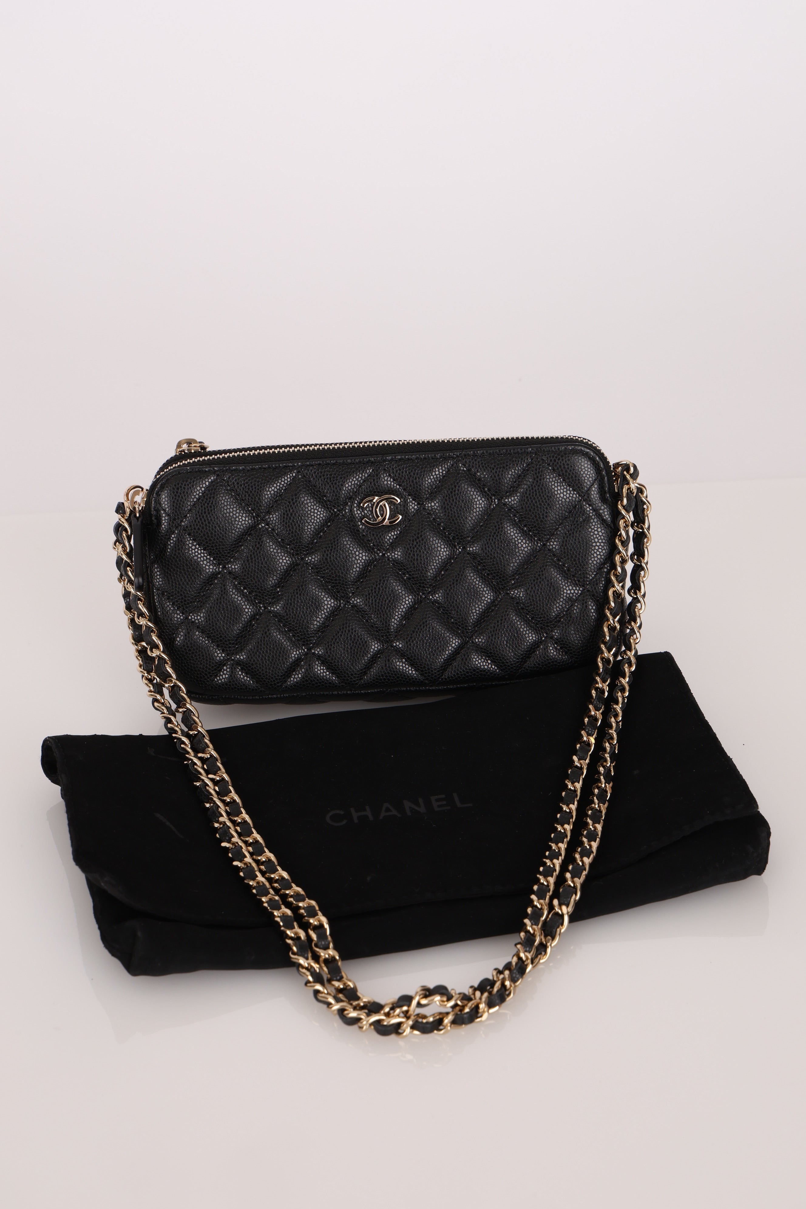 Chanel 2018 Caviar Double Zipper Wallet on Chain Crossbody