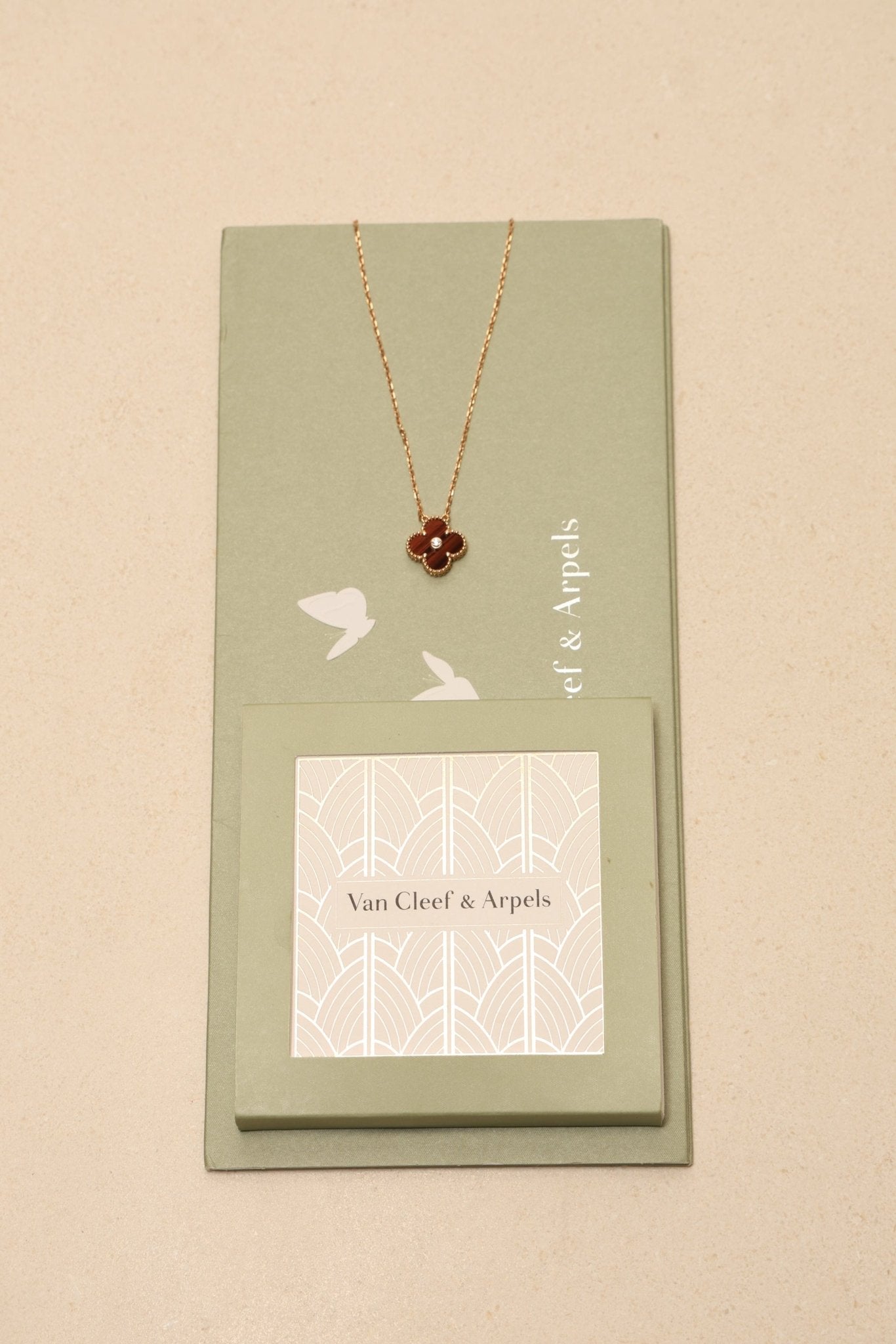 Part of the beloved Vintage Alhambra collection, this pendant necklace showcases a clover motif crafted from highly coveted Bull's Eye, embodying timeless elegance and enduring charm.