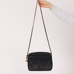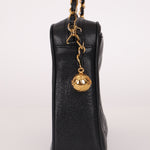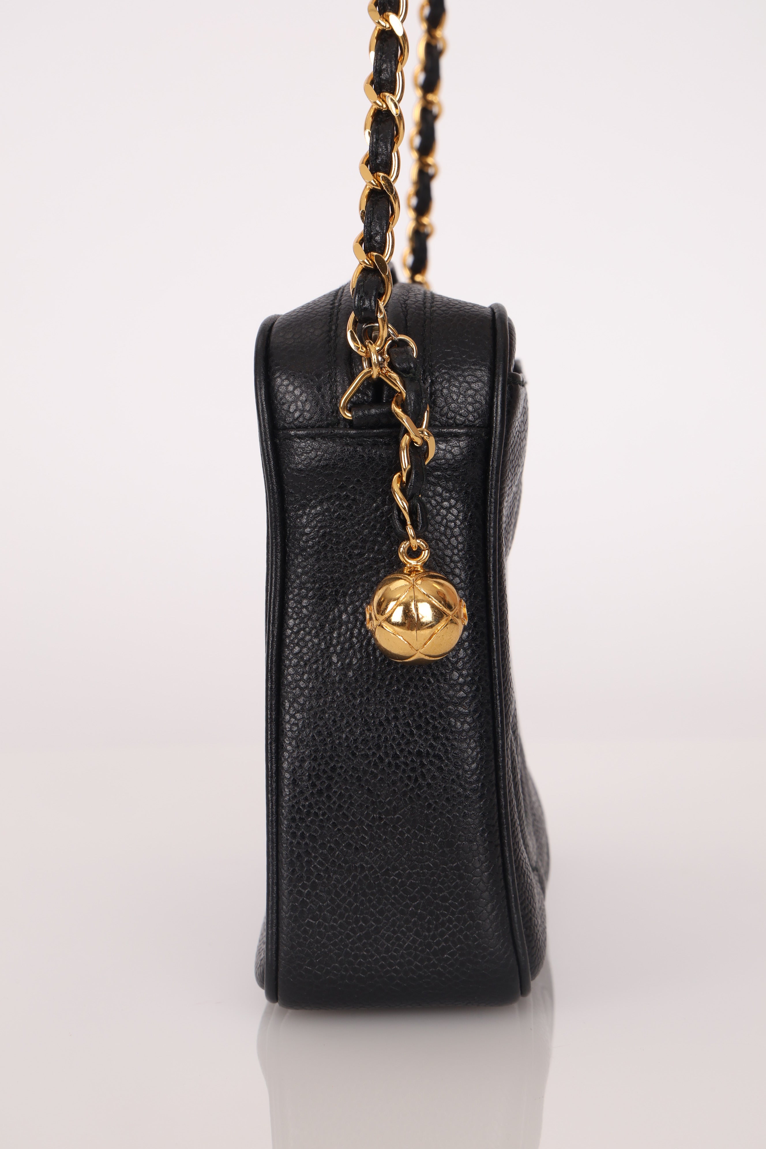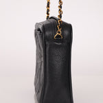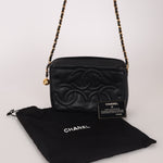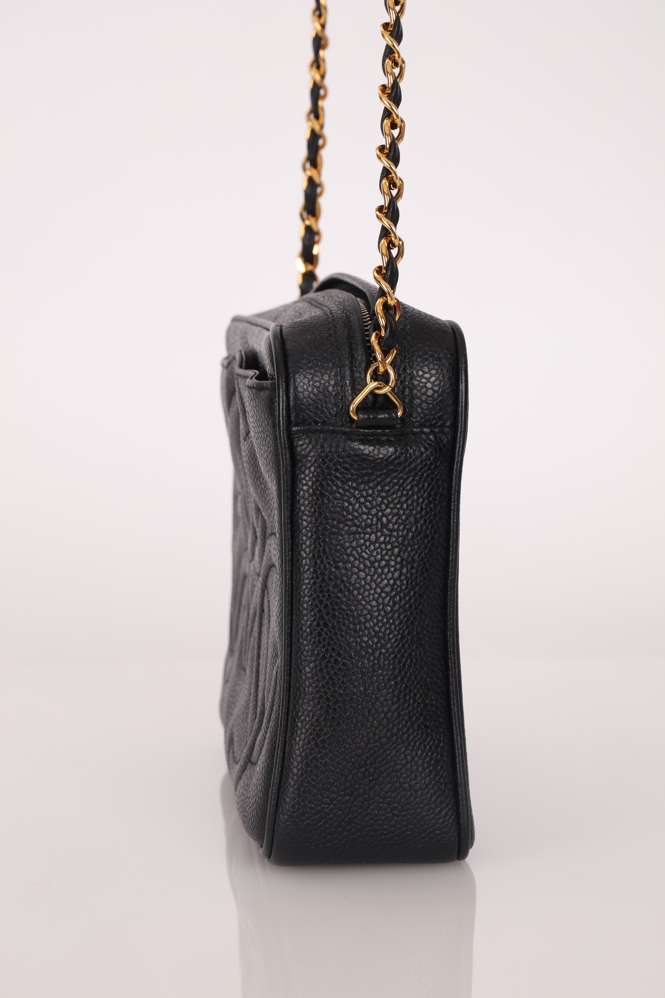 This Chanel Vintage Caviar Timeless Logo Camera Bag has not only one, but three timeless CC logos, a unique twist on the classic emblem. Crafted in durable black caviar leather, this bag is a perfect addition to your collection. Dress it up or down for a fancy evening or running errands.