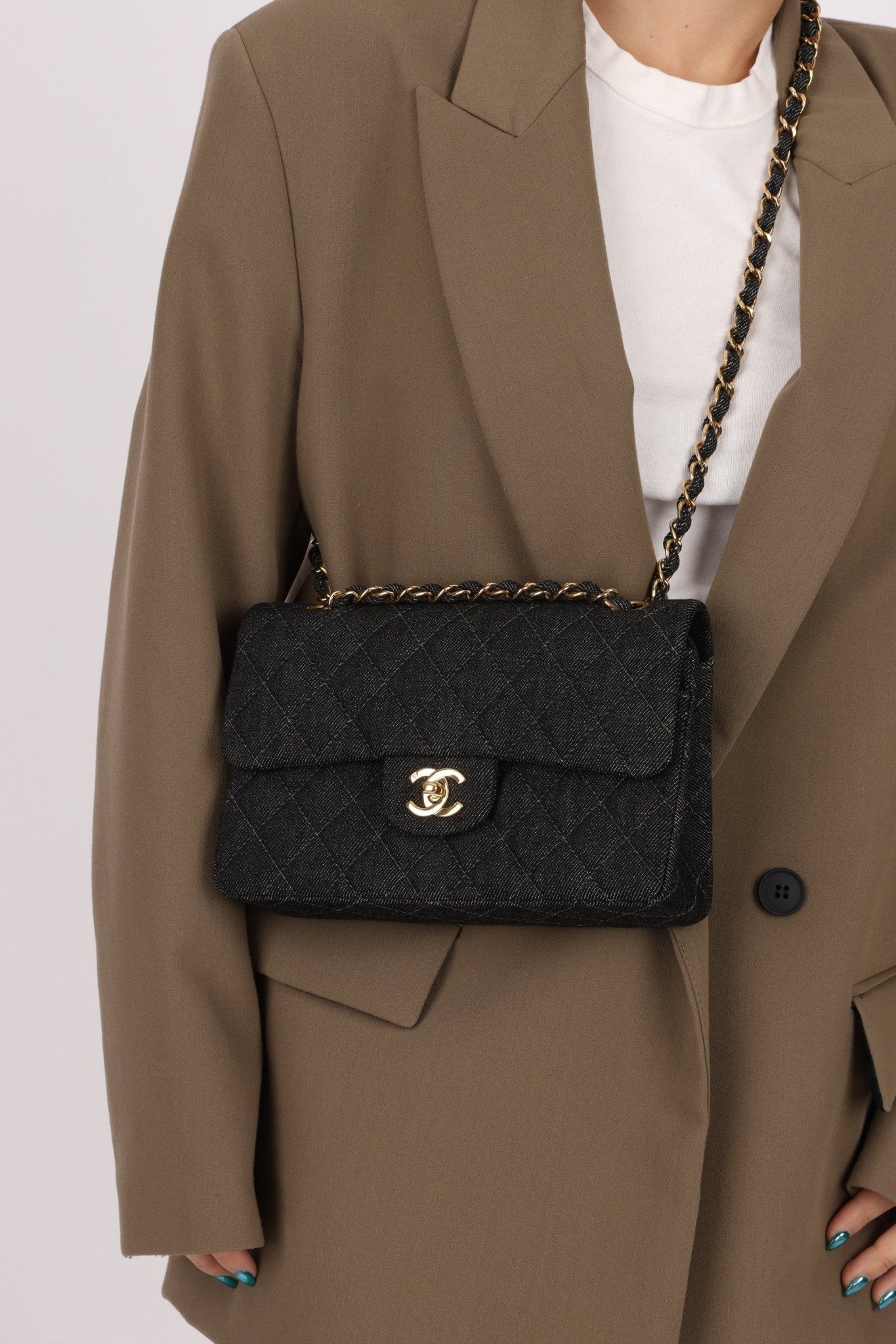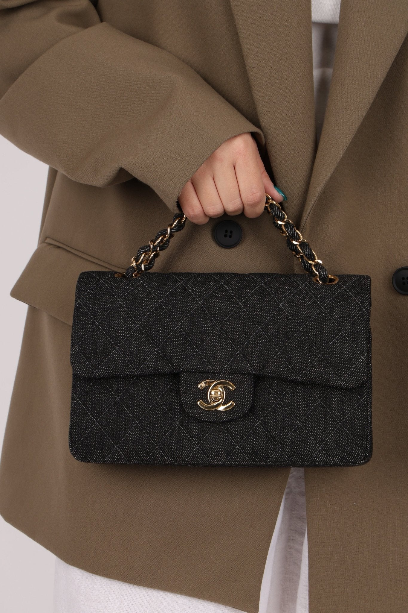 Ultra - Rare Chanel 1997 Black Denim Small Classic Double Flap 24K GP - FashioNica