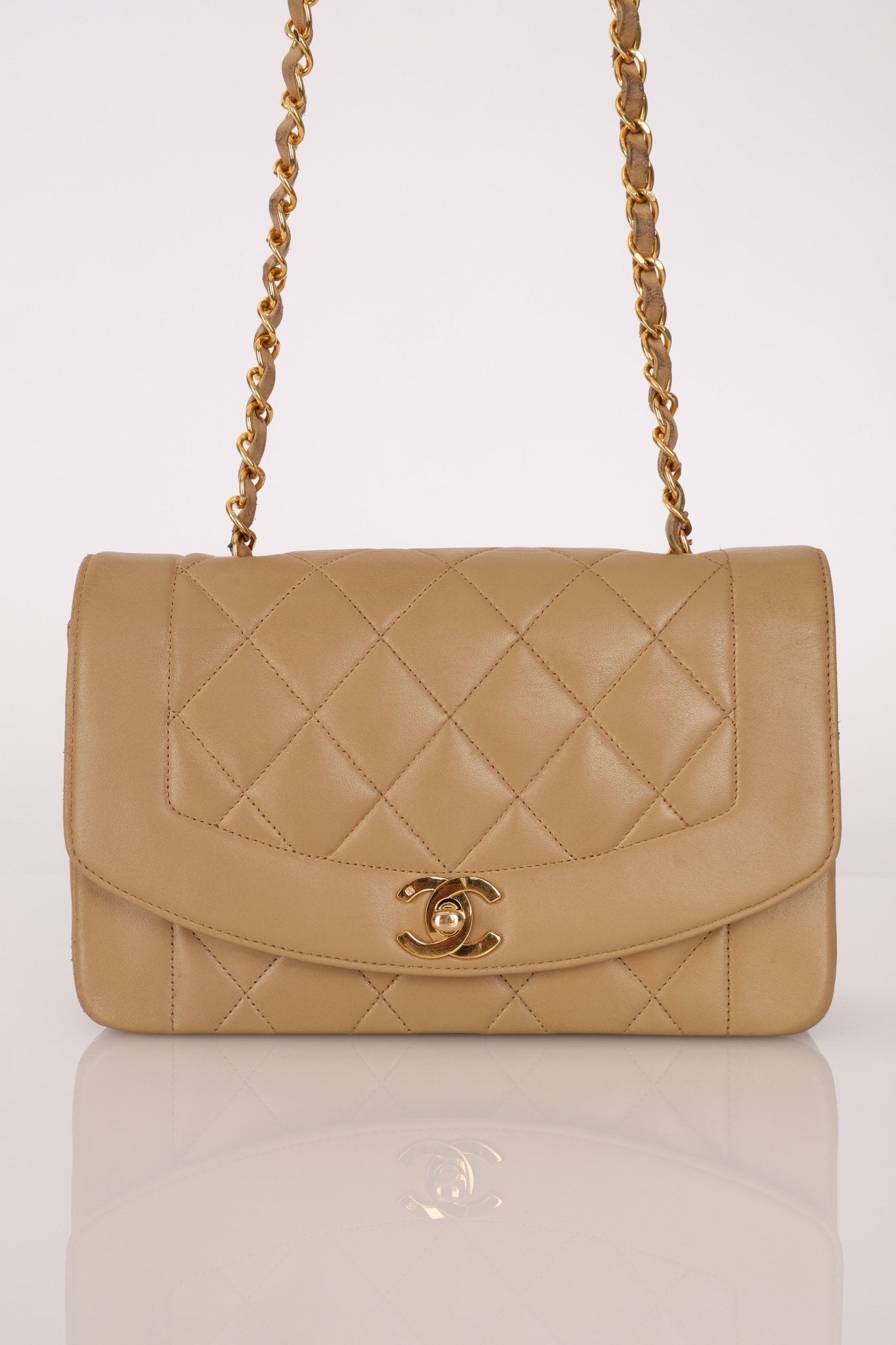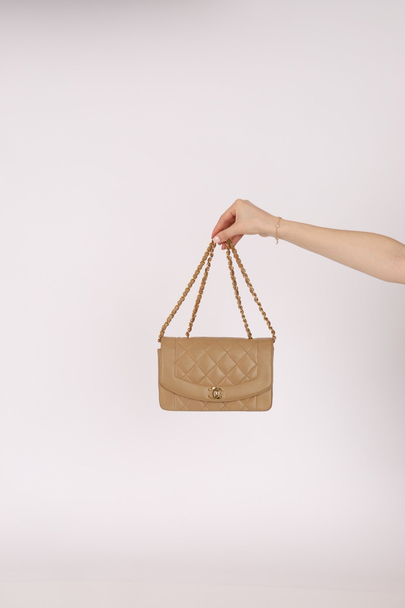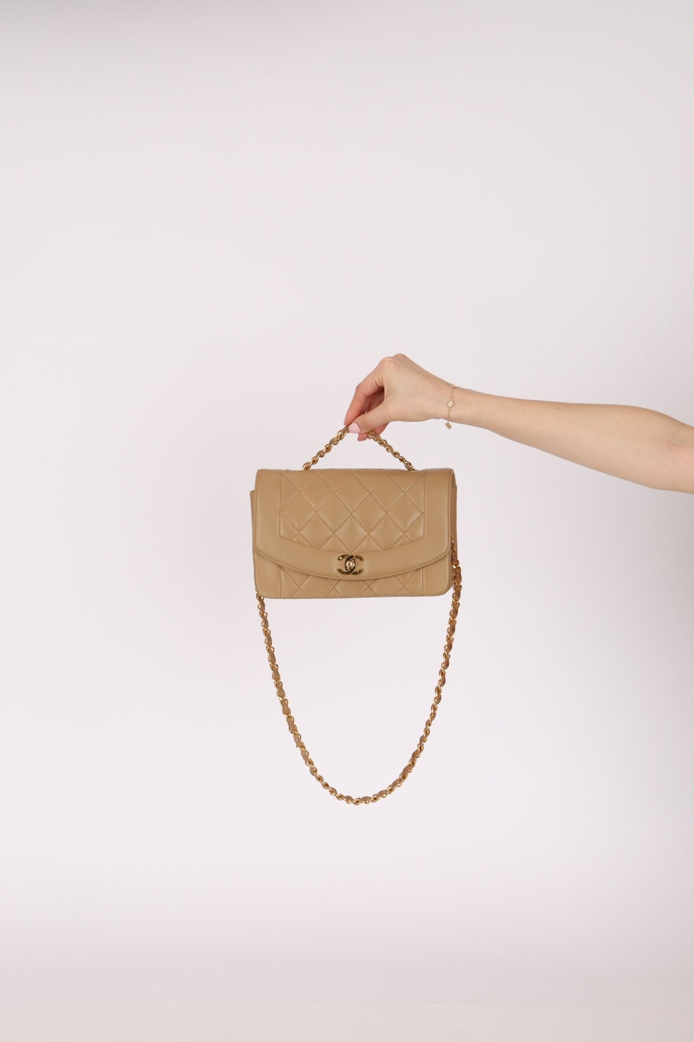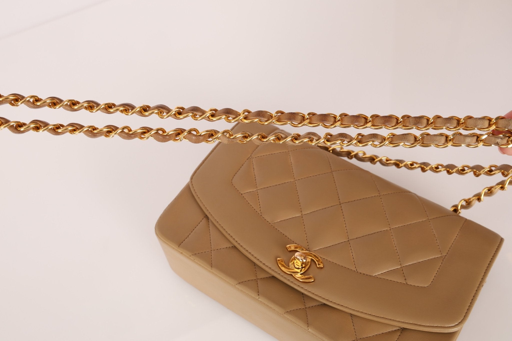 1994 Chanel Beige Lambskin Small Diana 24K GP - FashioNica