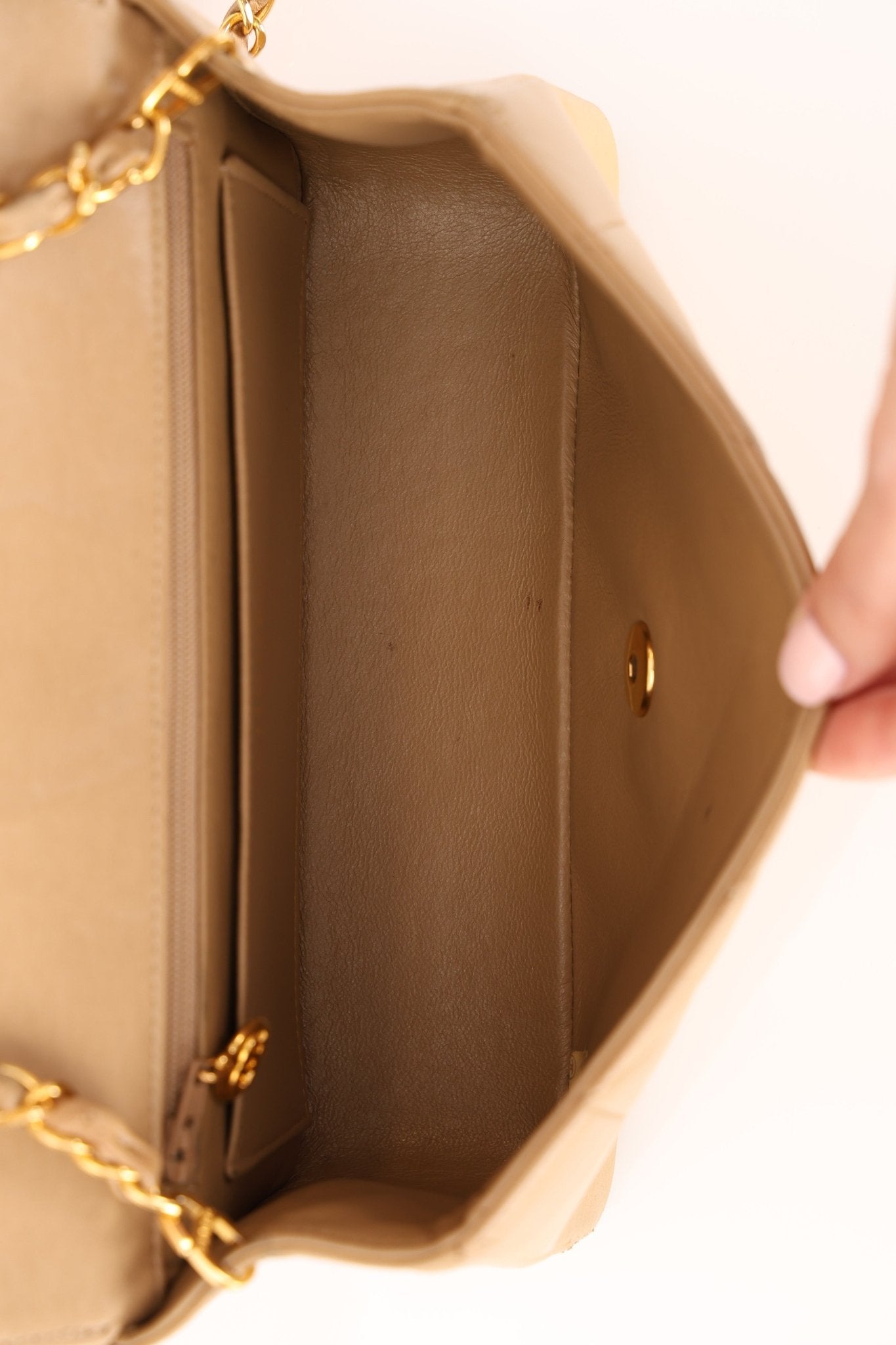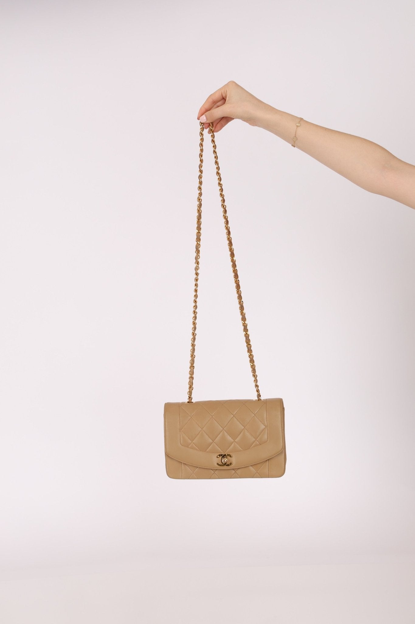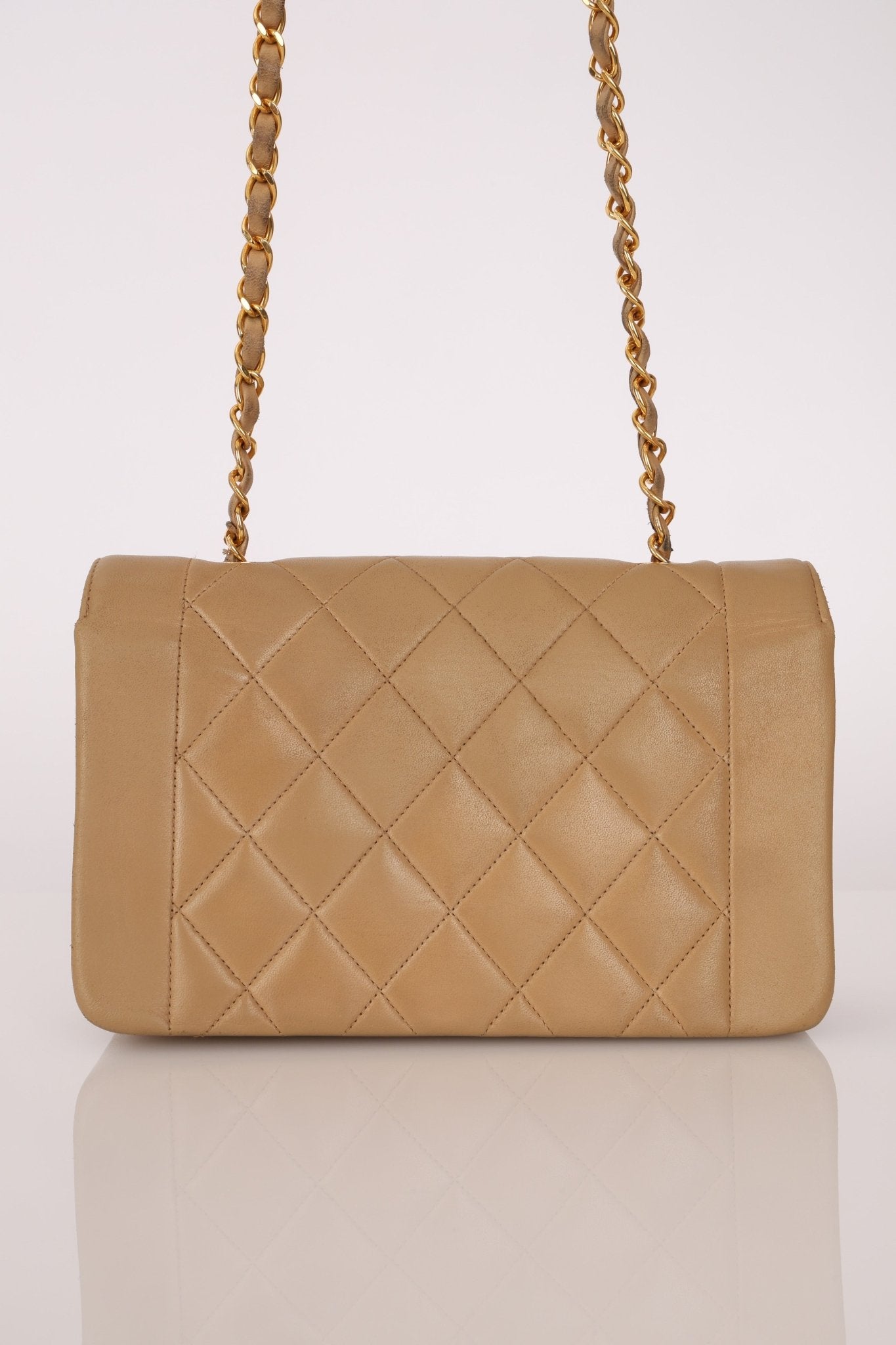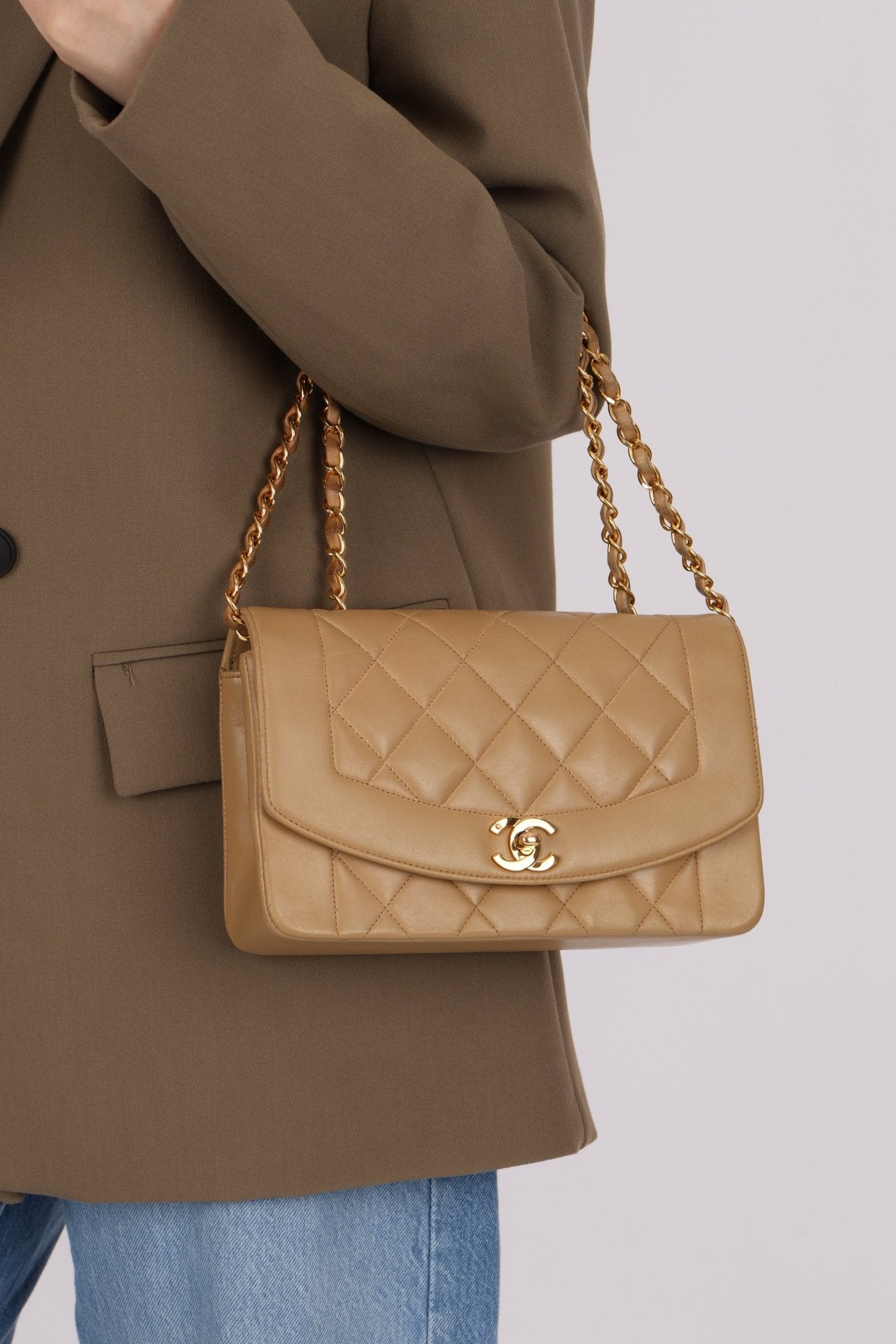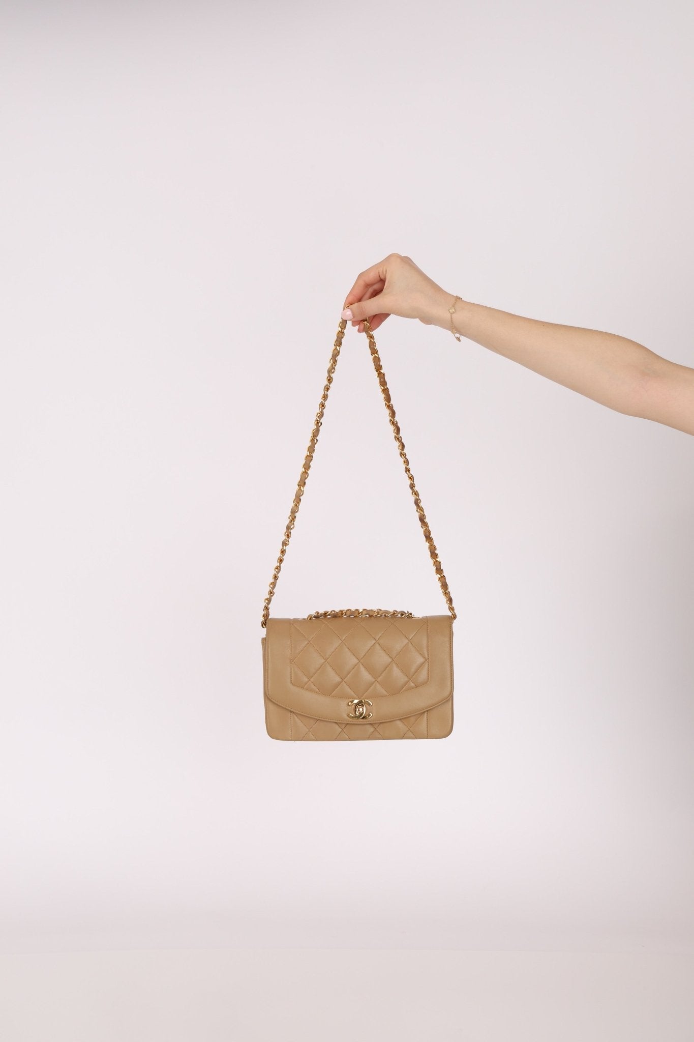 1994 Chanel Beige Lambskin Small Diana 24K GP - FashioNica