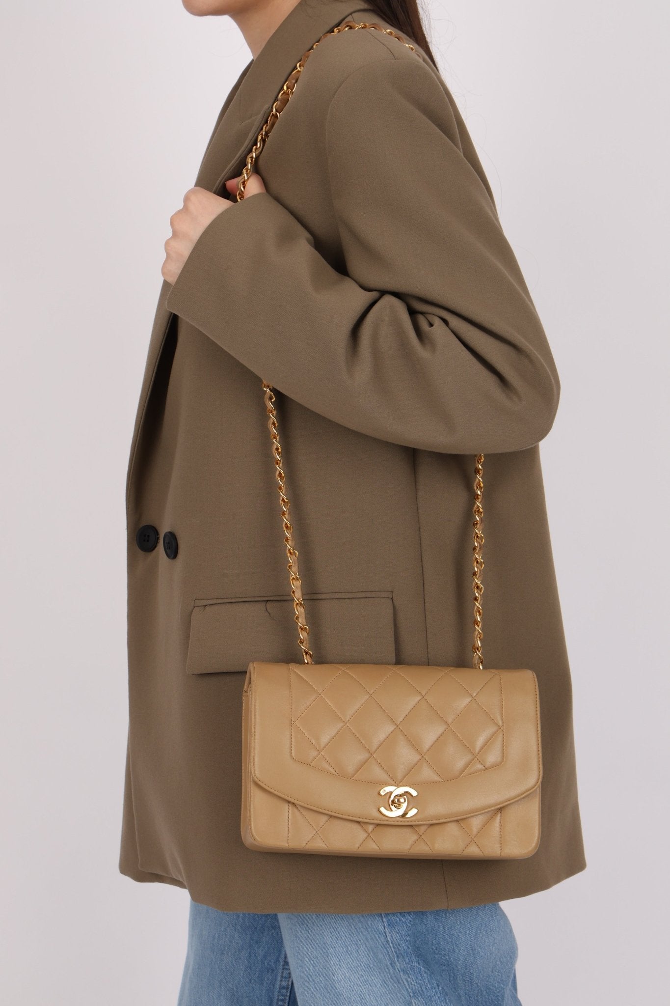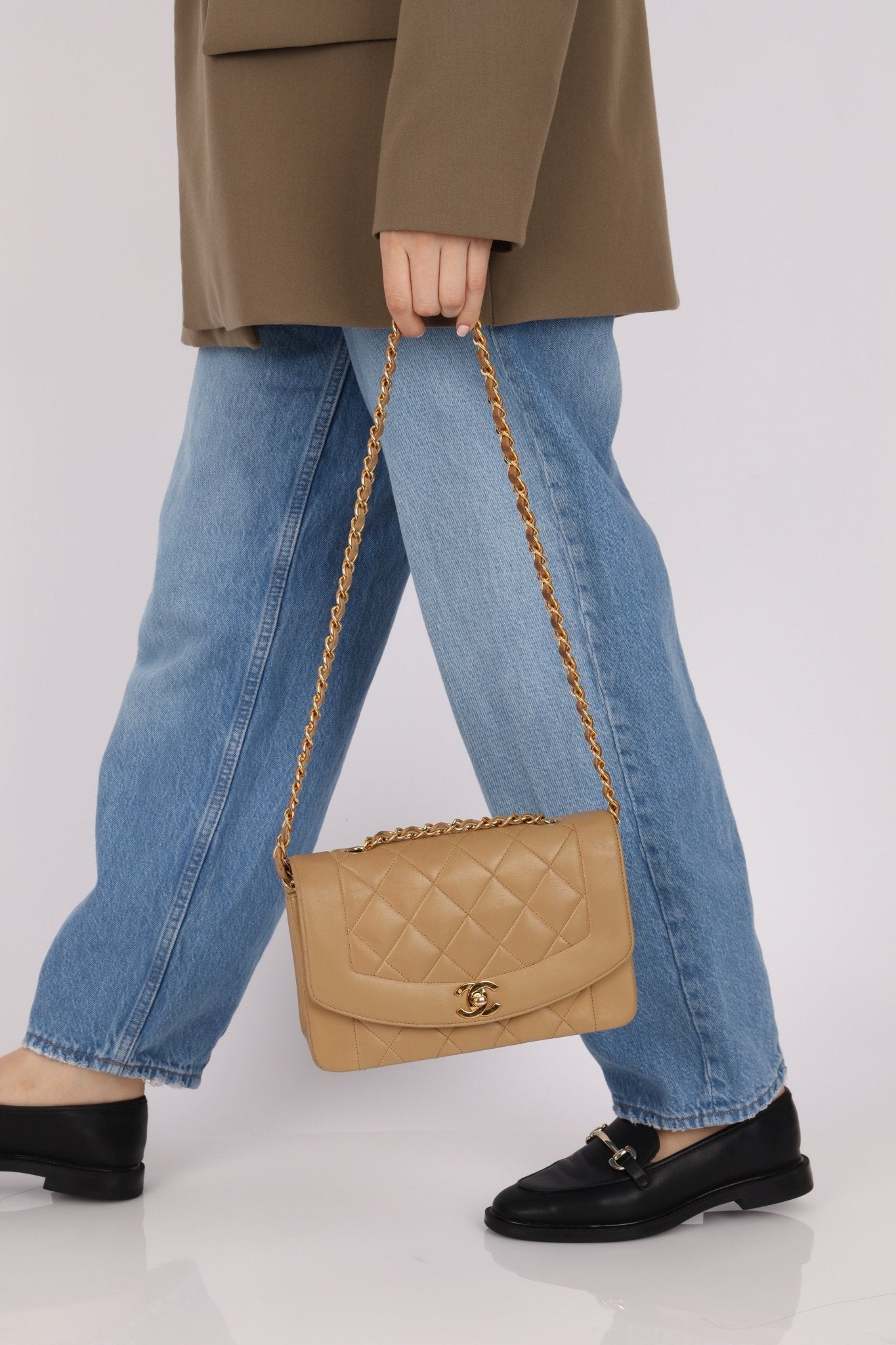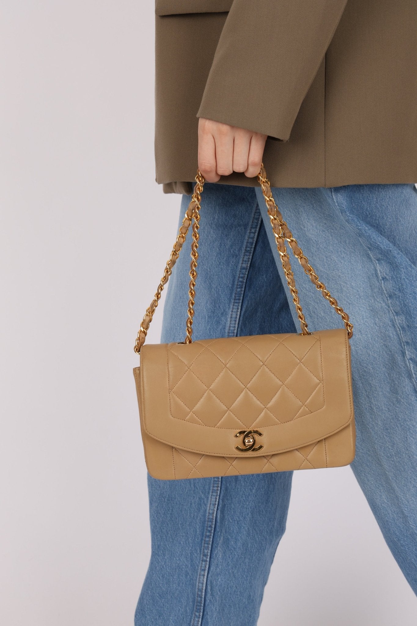 Named after one of the most iconic woman in history, this Chanel truly carries on the history and elegance of Princess Diana. Crafted from the buttery lambskin beige leather, it's perfect for any occasion, while the signature Chanel diamond quilted pattern adds a touch of luxury and elegance.
