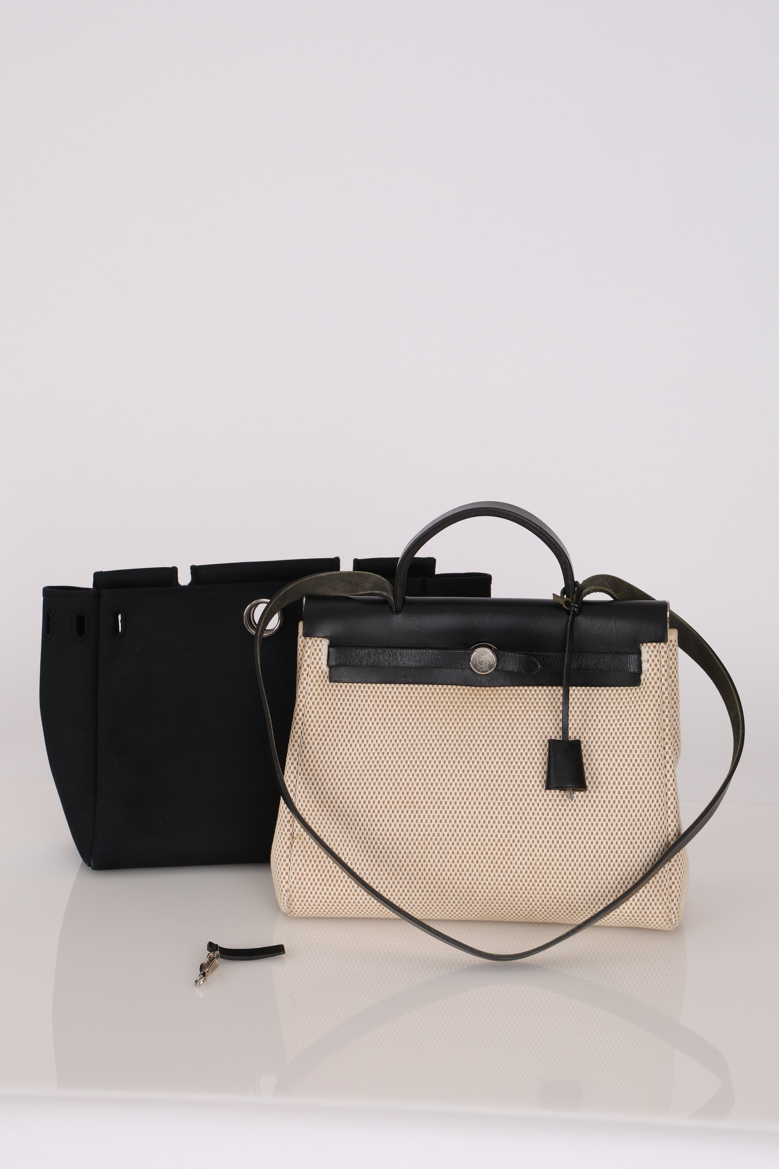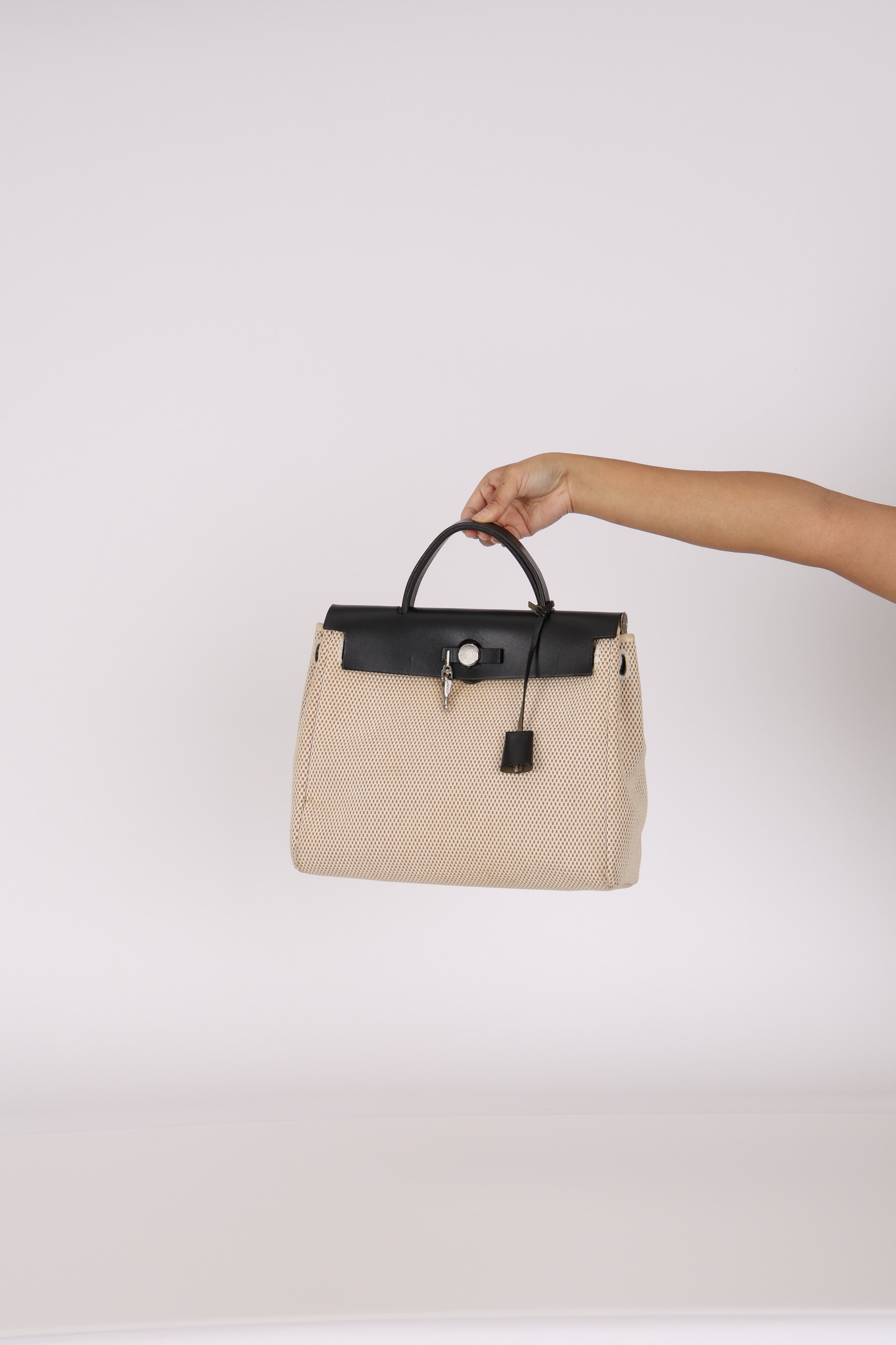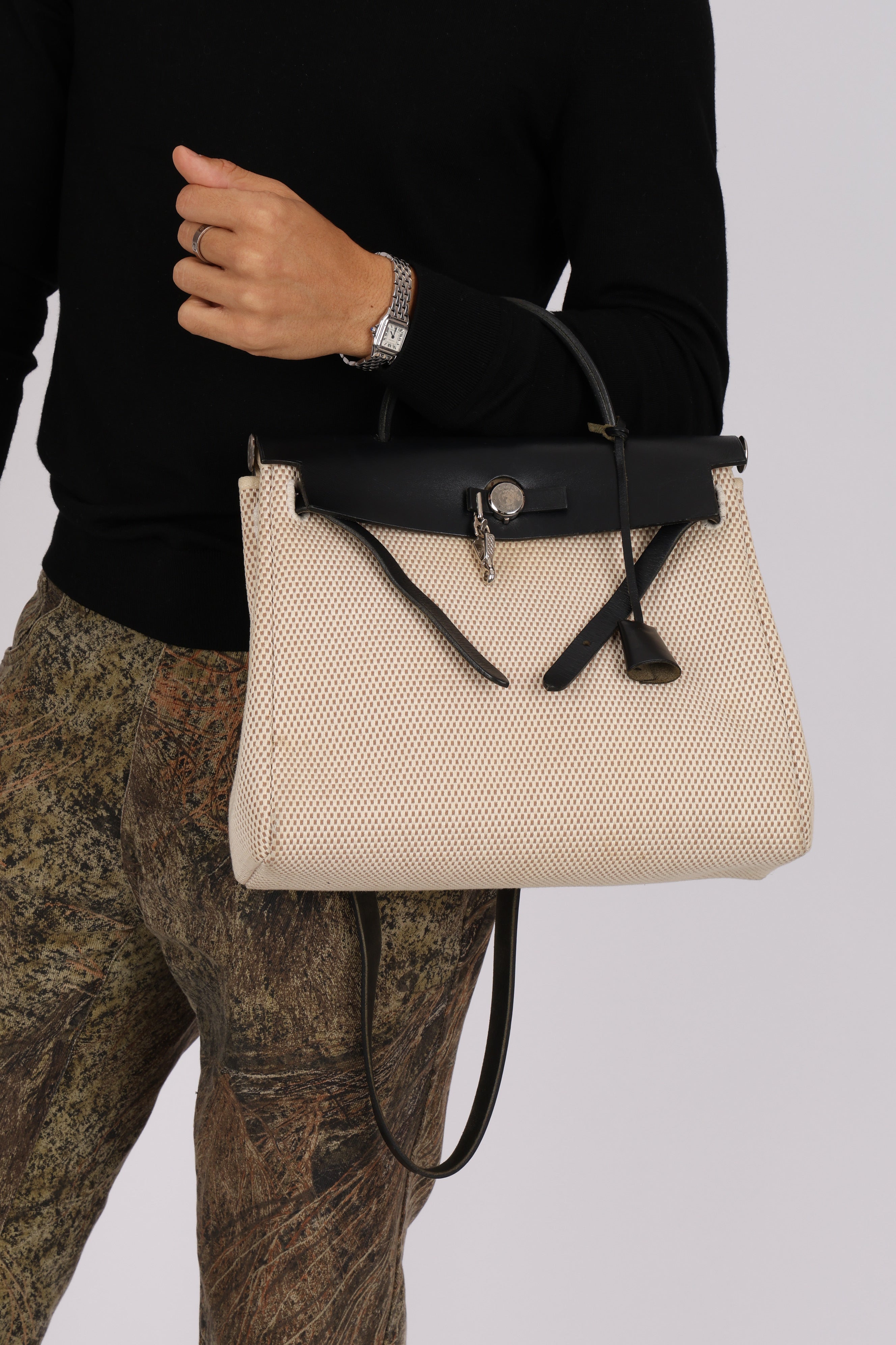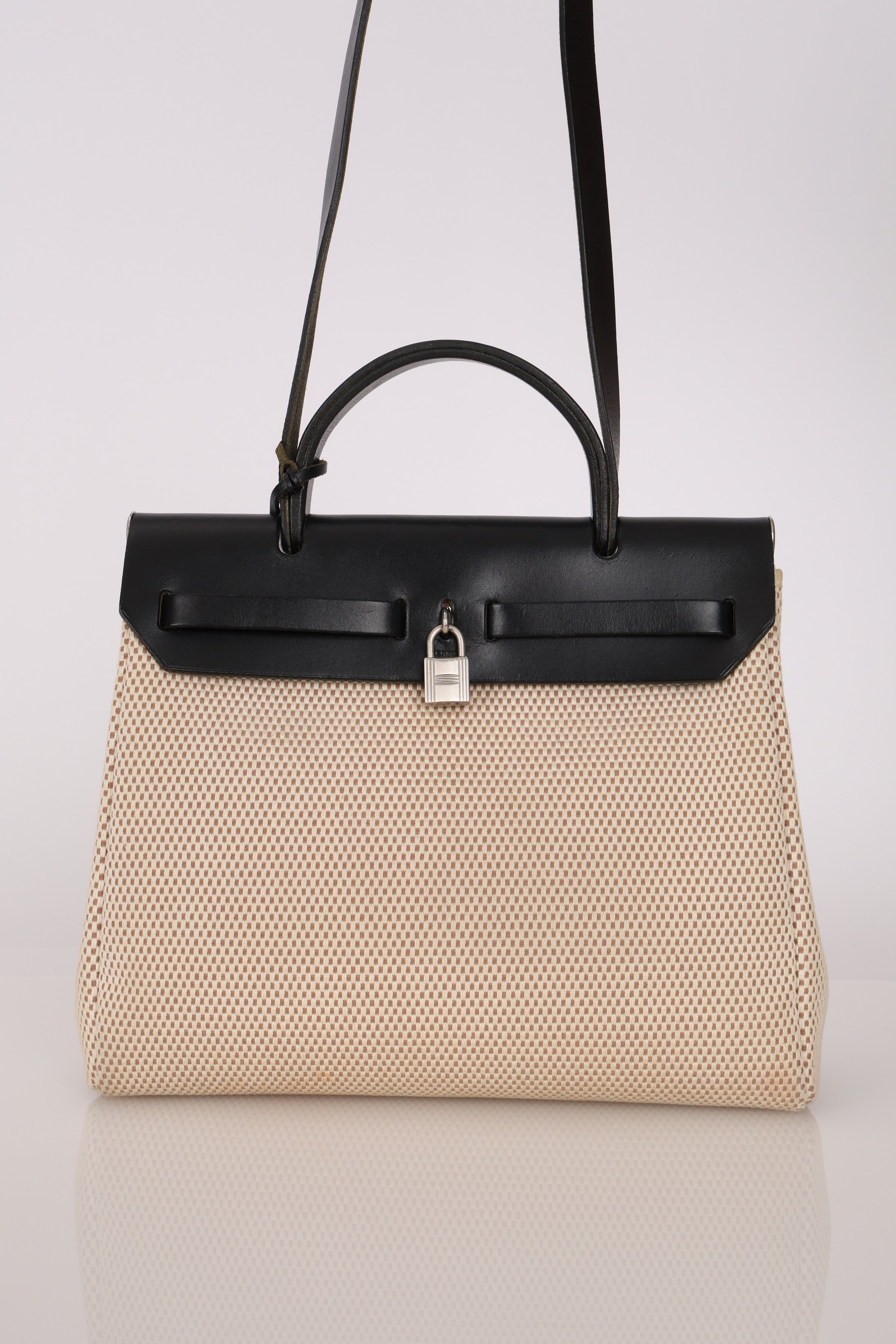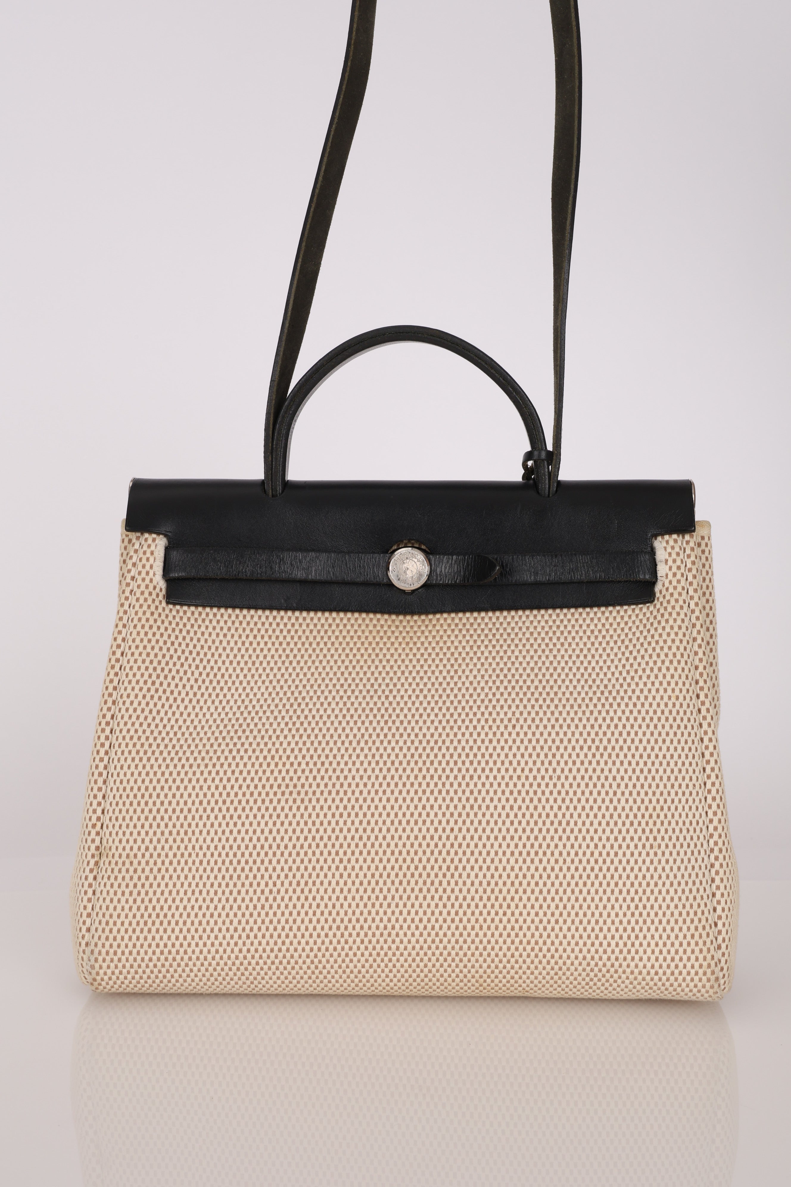 Hermès 2001 Natural Toile Canvas and Vache Hunter 2-in-1 Herbag 30