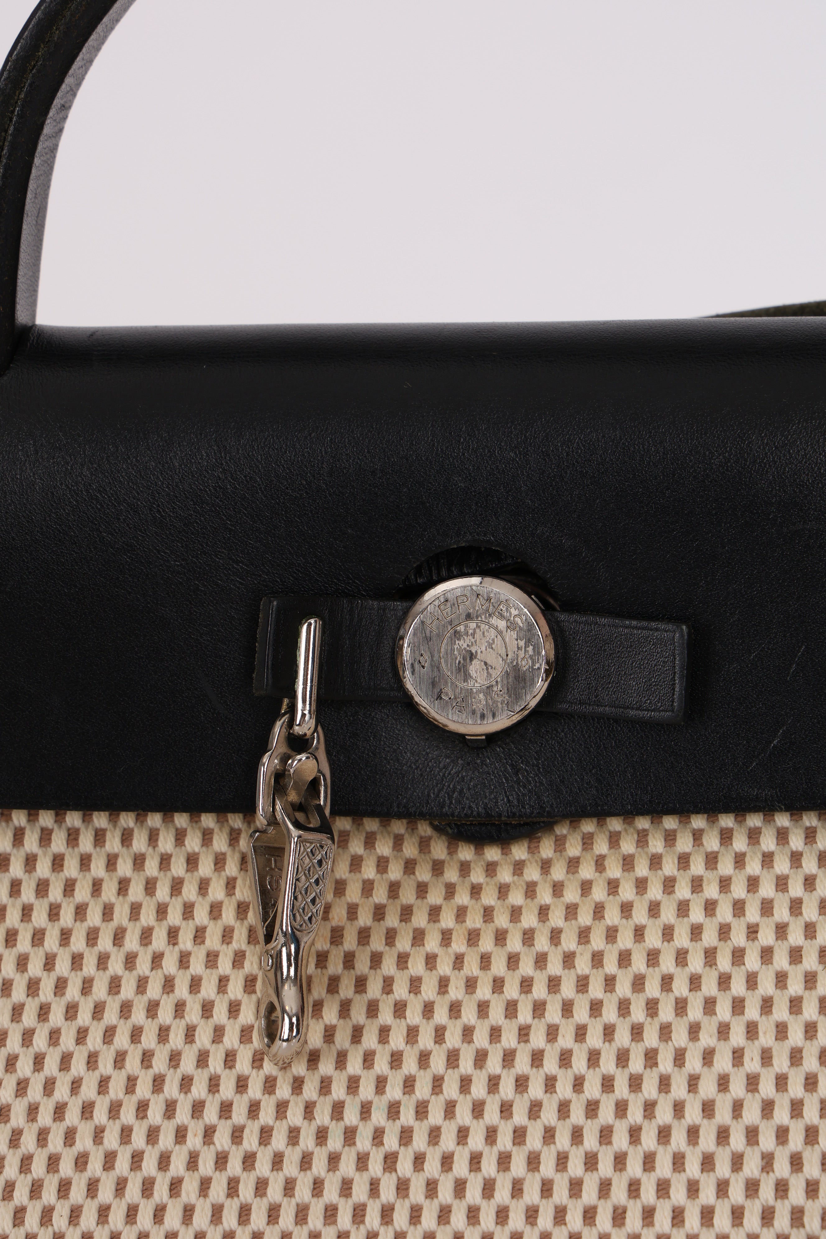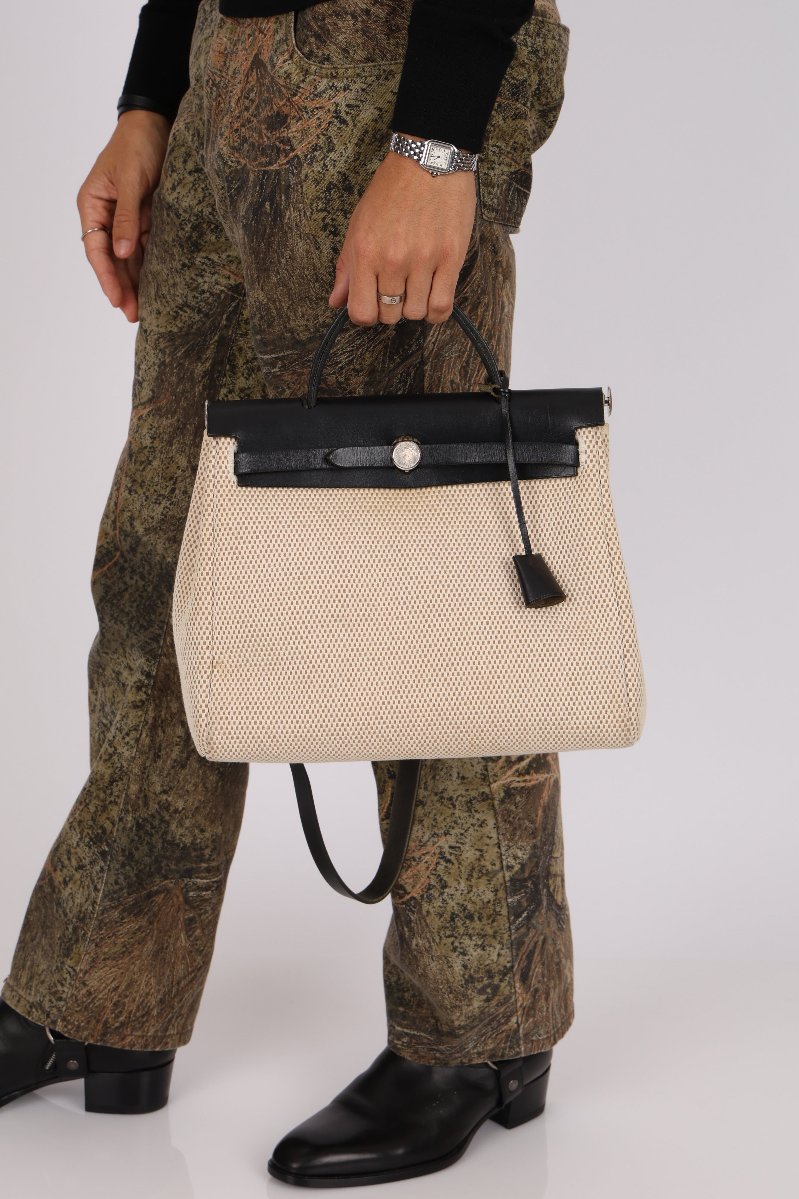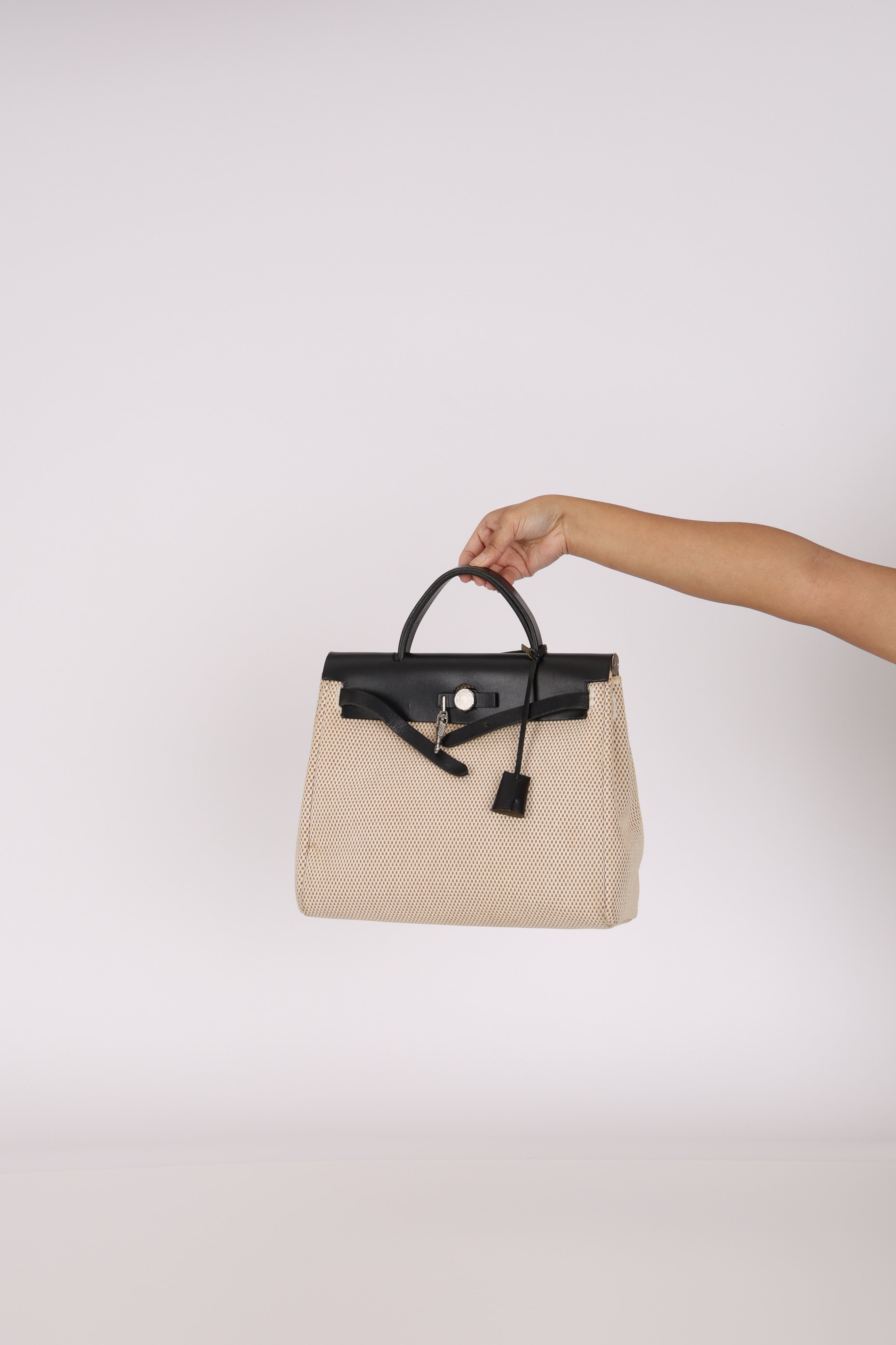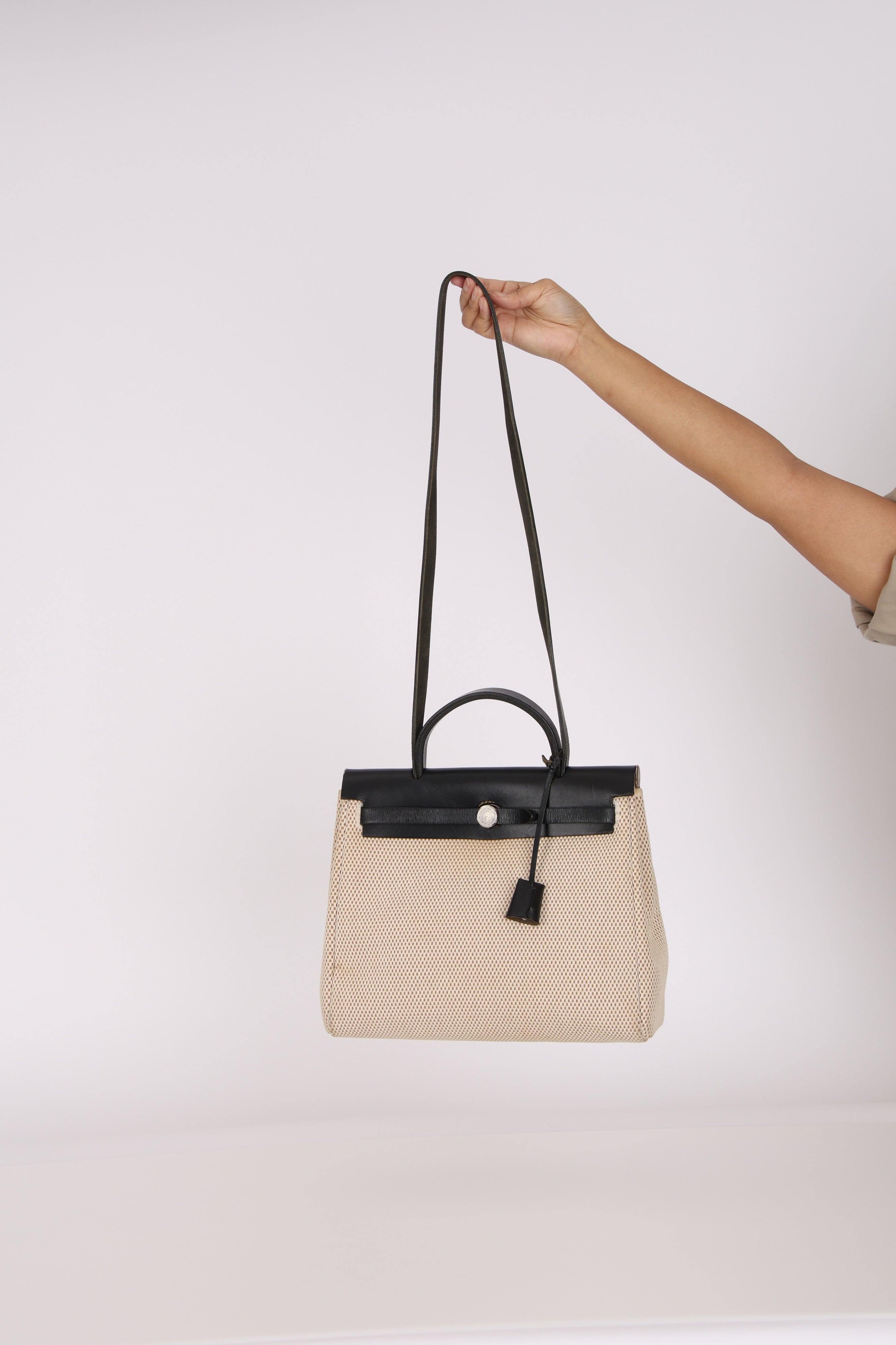 Hermès 2001 Natural Toile Canvas and Vache Hunter 2-in-1 Herbag 30