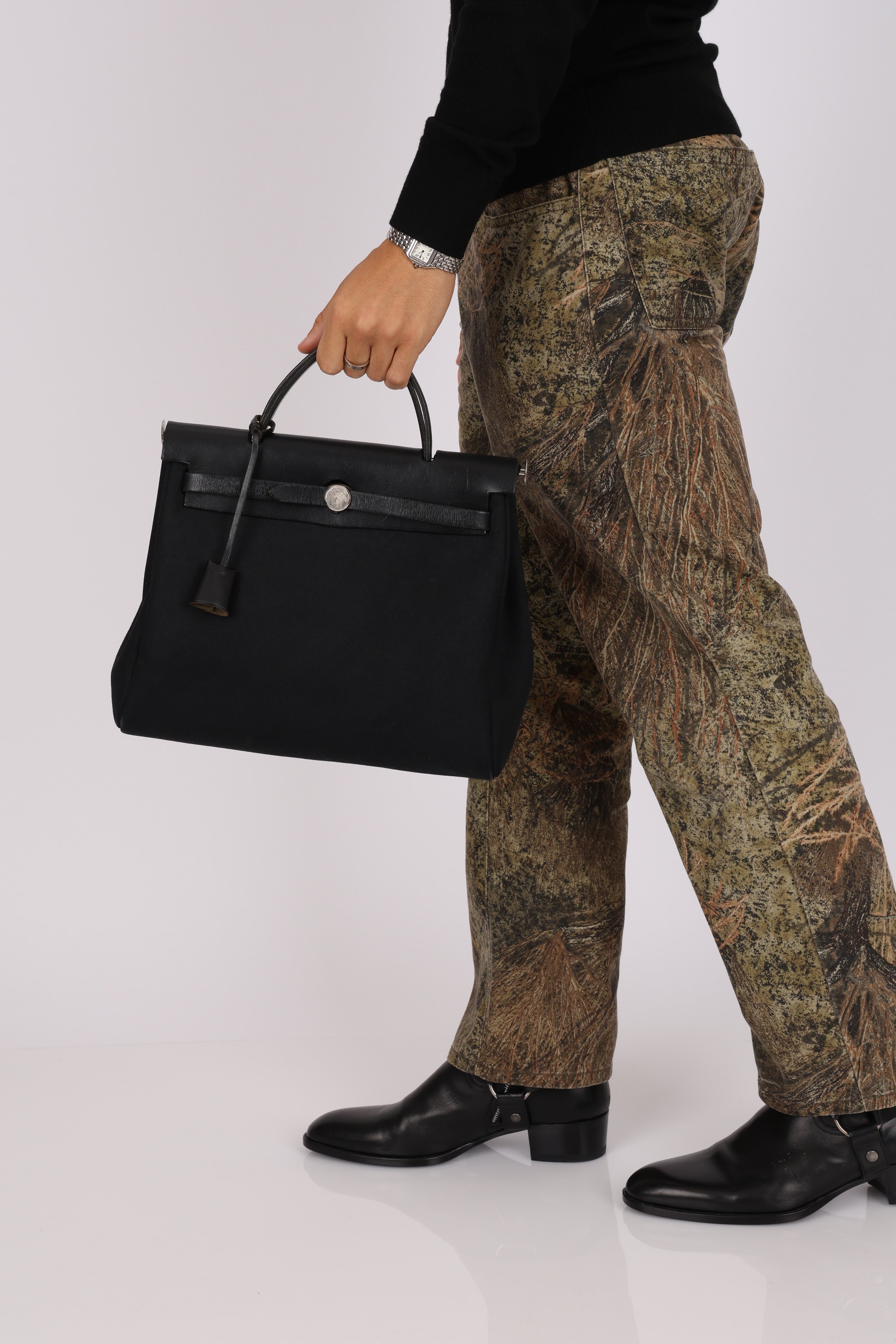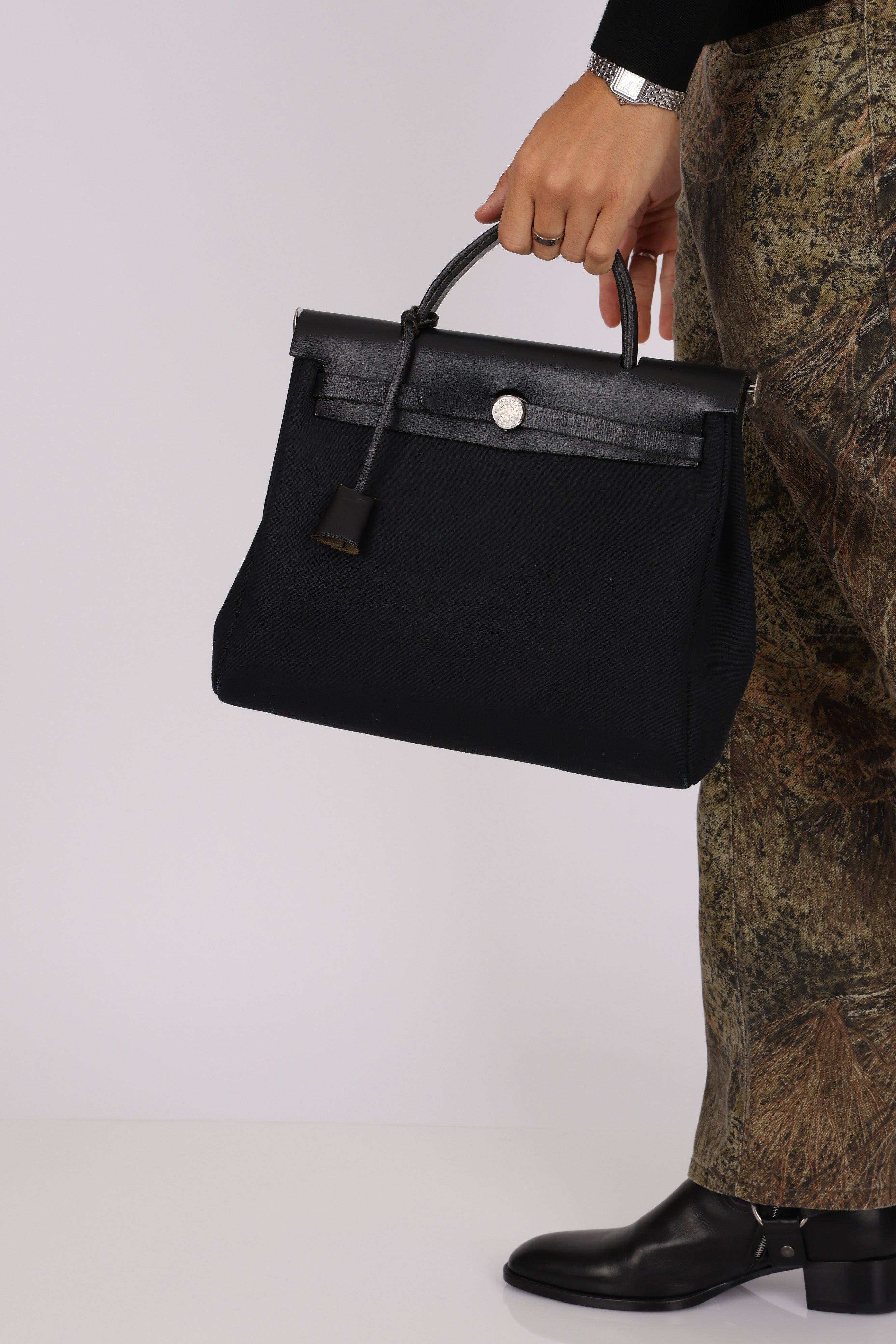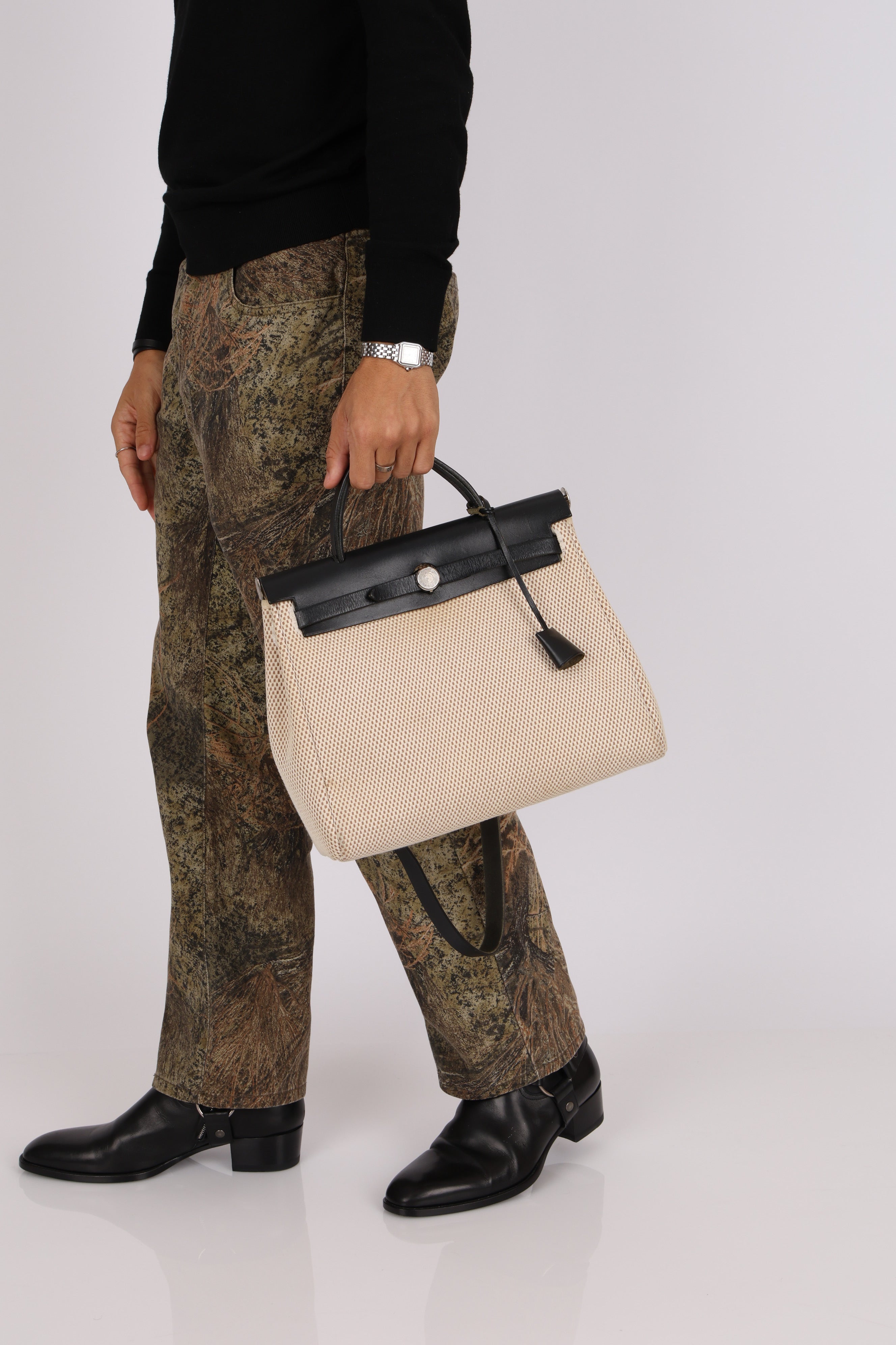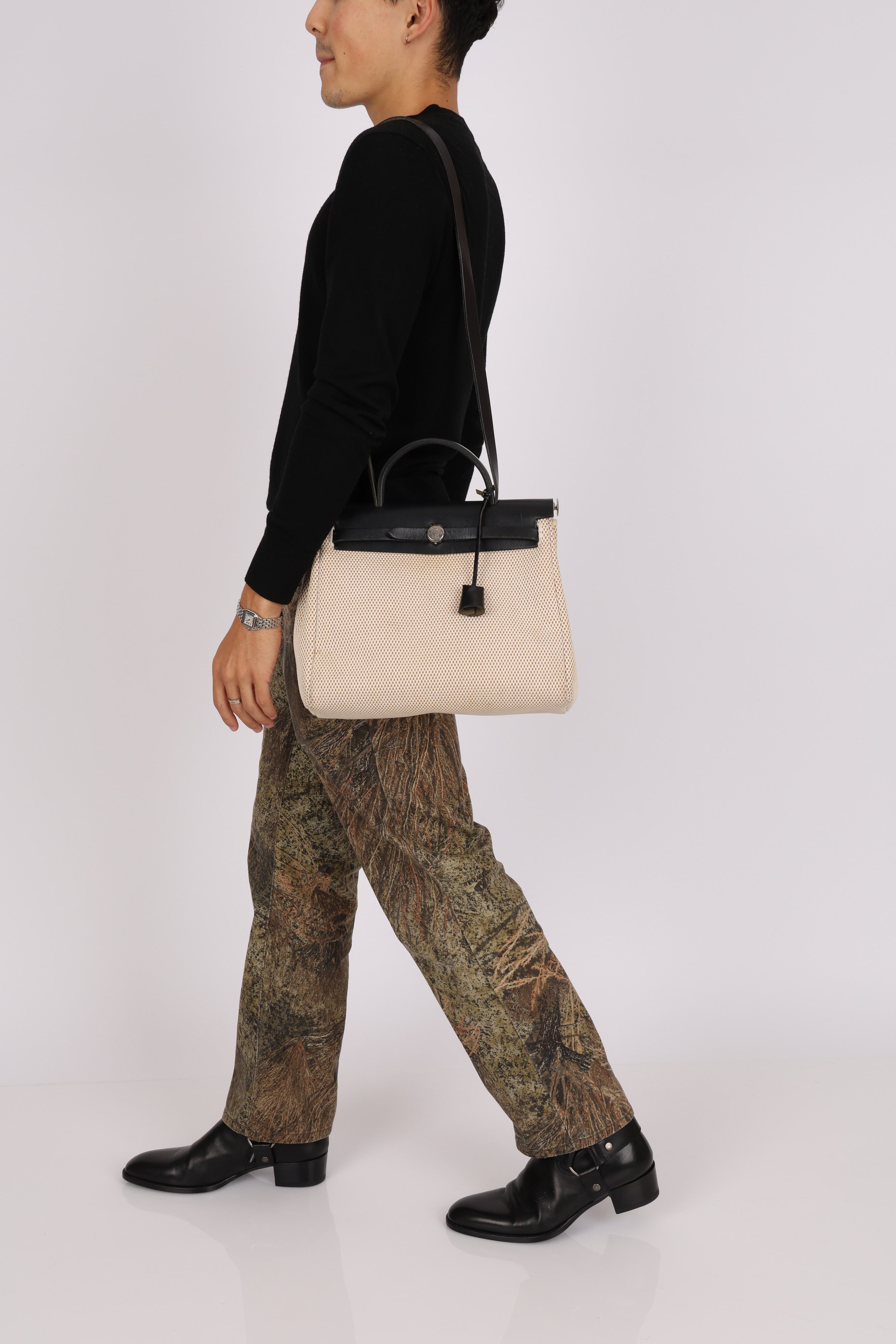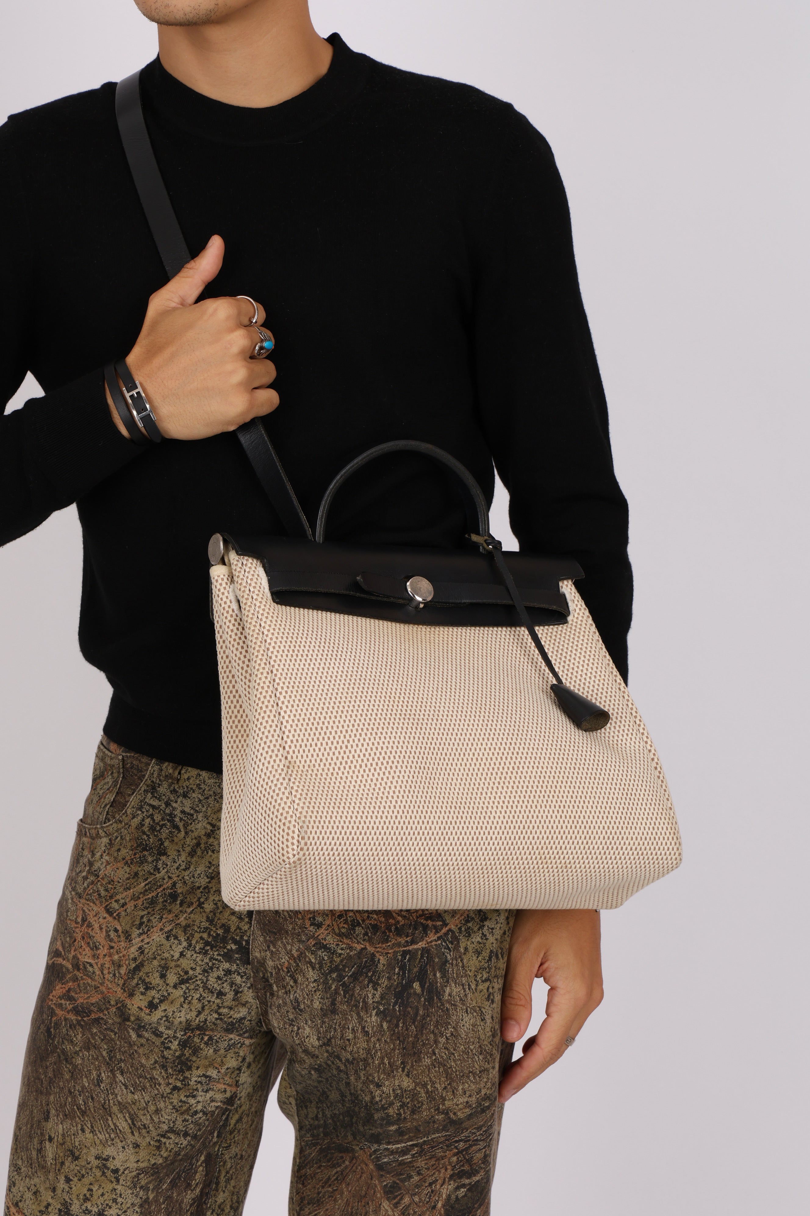 Hermès 2001 Natural Toile Canvas and Vache Hunter 2-in-1 Herbag 30