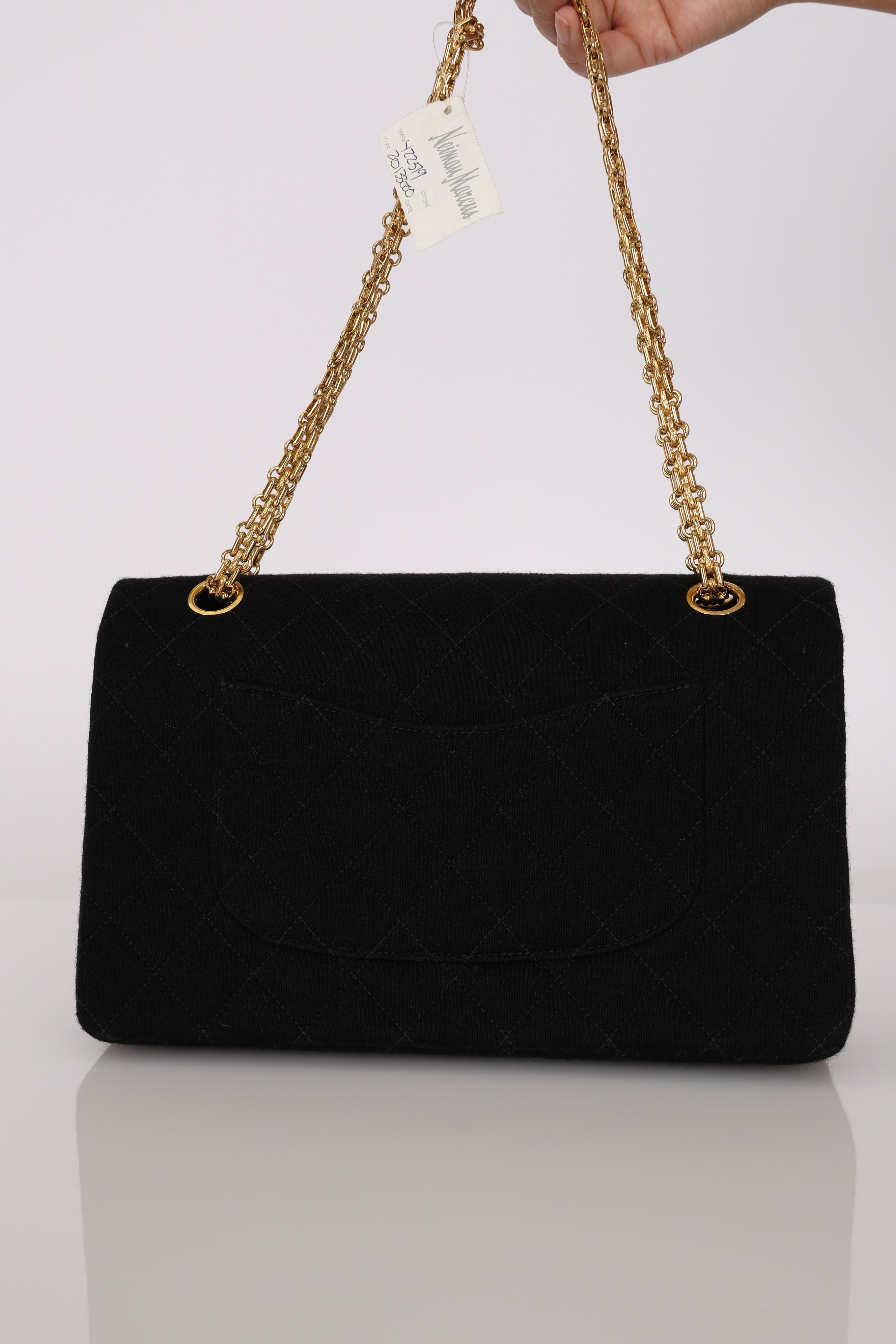 Chanel 1997 Black Jersey Reissue Chain Double Flap Bag